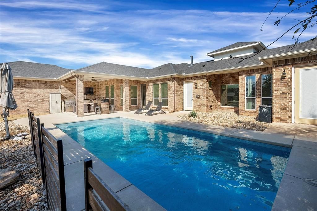 This house comes with a REDUCED RATE as low as 4.875% (APR 5.376%) through List & Lock™. This is a seller paid rate-buydown that reduces the buyer’s interest rate and monthly payment. Terms apply, see disclosures for more information. This exceptional custom-built home on 2.1 acres offers a rare blend of refined luxury, thoughtful design, and serene country living. Boasting four spacious bedrooms and four beautifully appointed baths, the home is perfectly suited for both everyday comfort and elegant entertaining. As a bonus, primary bath includes a dedicated closet with stackable washer-dryer hookups or space for a gun safe. At the heart of the residence is a chef’s kitchen designed to impress, complemented by an oversized pantry, a dedicated wet bar area, and seamless flow into the main living space— showcasing tranquil views of a mature pecan orchard. A separate private office provides an ideal work-from-home retreat.Step outside to your own resort-style oasis, where a sparkling pool controlled electronically by a phone app, is framed by mature trees that create a stunning natural backdrop while ensuring exceptional privacy. A covered porch with an outdoor grilling area along with a stone fire pit that invites year-round entertaining and relaxed evenings under the Texas sky. With its unparalleled setting, thoughtful layout, and one-of-a-kind charm, this remarkable property offers a lifestyle that is both elevated and peaceful—truly a rare find in today’s market. Neighborhood has two entrances for easy access and as a bonus there are no city taxes.