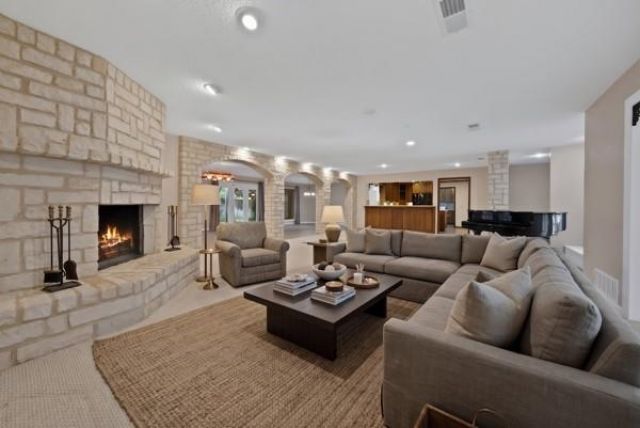 Beautiful, stately home in highly sought-after Interlochen Estates in Arlington! Offering nearly 4,200 sq ft, this impressive, single story 4-bedroom, 3.5-bath residence with 3-car garage blends elegance, comfort, and thoughtful design throughout. The open-concept floor plan is highlighted by stunning stone archways, a grand stone fireplace, and walls of windows and French doors along the back that flood the home with natural light and showcase serene garden views. Perfect for entertaining, this home has two separate dining rooms, an expansive great room, and additional family room all flowing together seamlessly, yet with defined boundaries. All bedrooms are generously over-sized and feature direct ensuite bathroom access and large closets. This home has abundant storage, custom built-ins, and a walk-in cedar closet. The large primary suite offers his & hers closets, dual sinks, a separate vanity, soaking tub, large shower and access to one of the patios in the backyard. The chef’s kitchen is both tasteful and practical. It is equipped with a luxury Viking professional gas double oven and range with griddle, indoor grill and custom vent hood. A large island with prep sink, appliance garage and ample cabinetry and counterspace make this kitchen a chef's dream! A standout feature of this home is the flexible guest or in-law suite privately located off the oversized laundry room. This area is complete with its own sitting room, bedroom, full bath and exterior door with private patio—perfect for multi-generational living or extended stays. The tiled 3-car garage adds a polished touch. Outside you will find the beautifully landscaped backyard which offers a tranquil, garden-like setting with two separate seating areas and the neighborhood's signature canal views. A full roof replacement was done in 2023 for added peace of mind. Interlochen Estates is known for its scenic canals, mature trees, and rolling hills, making this a truly exceptional place to call home.