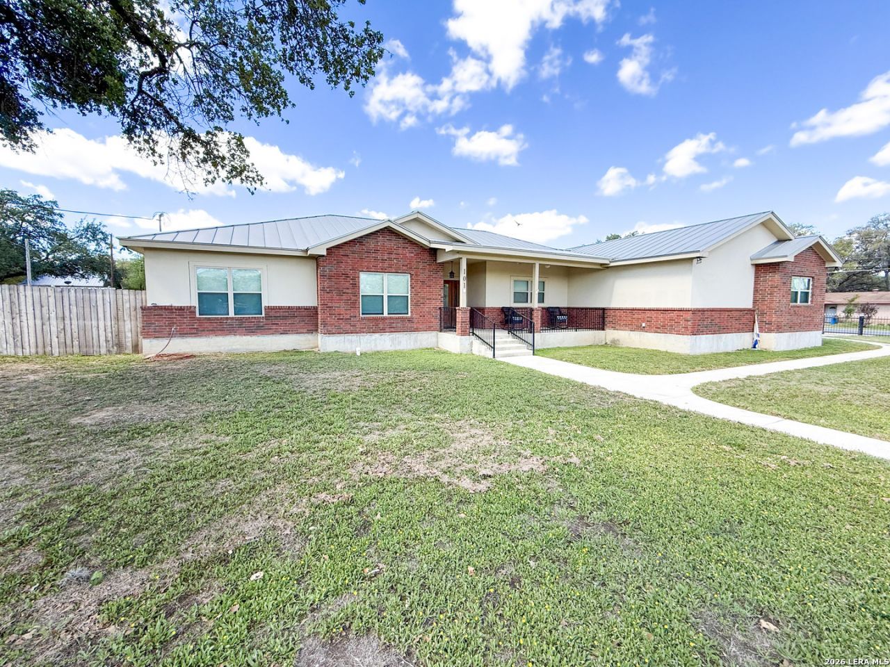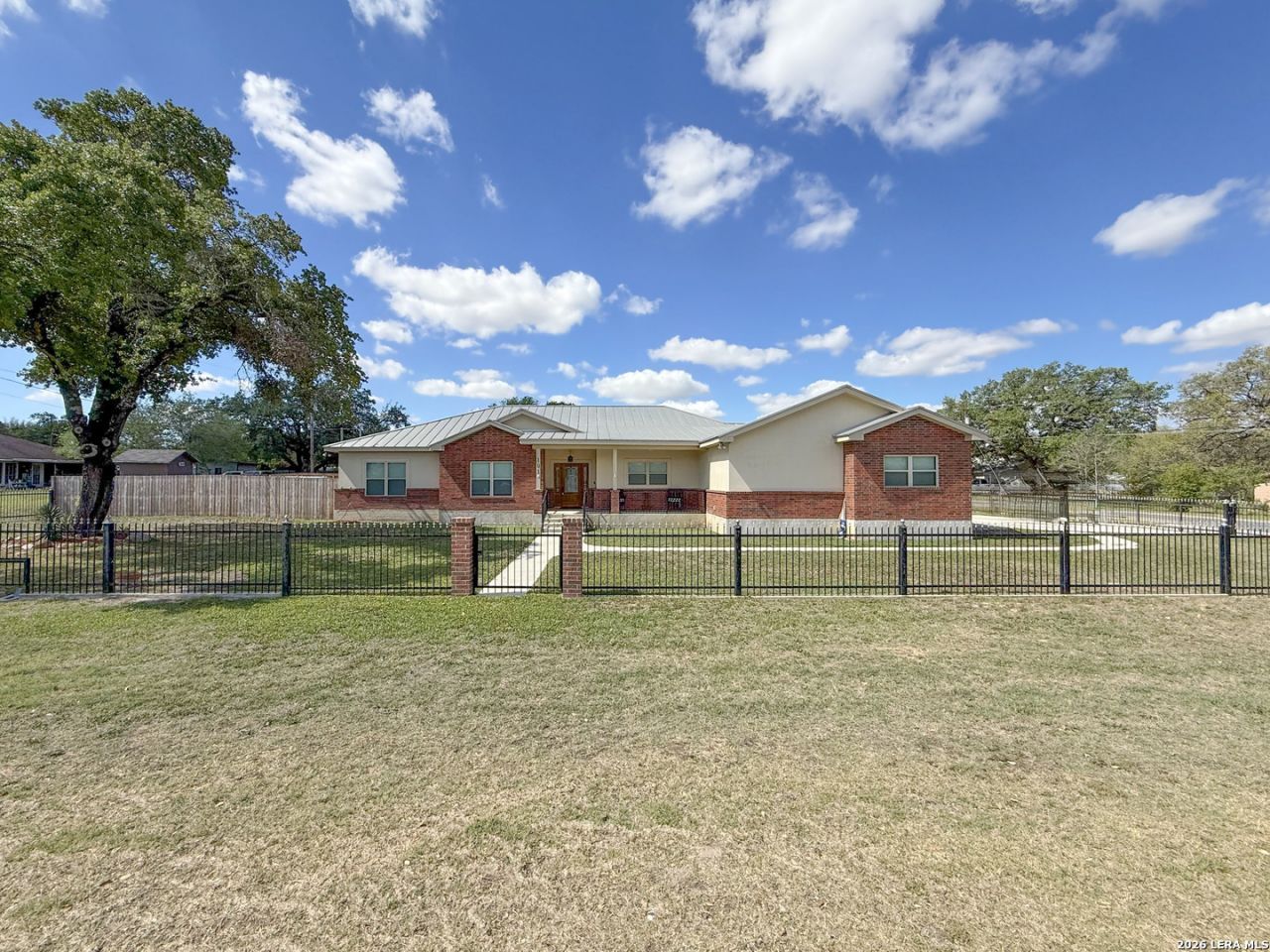 Welcome to your next dream home! Featuring a classic brick exterior and a spacious front porch, you get instant inviting curb appeal and a welcoming place to relax and unwind. Inside, youll find a well-designed layout with a generously sized living room that flows seamlessly into the dining area and kitchen, making entertaining or hosting a breeze. The kitchen is equipped with sleek stainless steel appliances, ample cabinetry, and plenty of workspace to meet all your cooking needs. The primary bedroom serves as a private retreat, complete with a walk-in closet and an oversized ensuite bathroom designed for comfort. Two secondary bedrooms boast an ensuite, offering flexibility for guests or multi-generational living. Step outside to enjoy a covered back patio overlooking a sizable yard, perfect for outdoor gatherings, pets, or simply enjoying Texas weather. Conveniently located near city amenities, this home offers easy access to shopping, dining, and entertainment, while being just minutes from the highway for a quick commute to San Antonio. Schedule a showing and start envisioning life rooted in comfort and style.