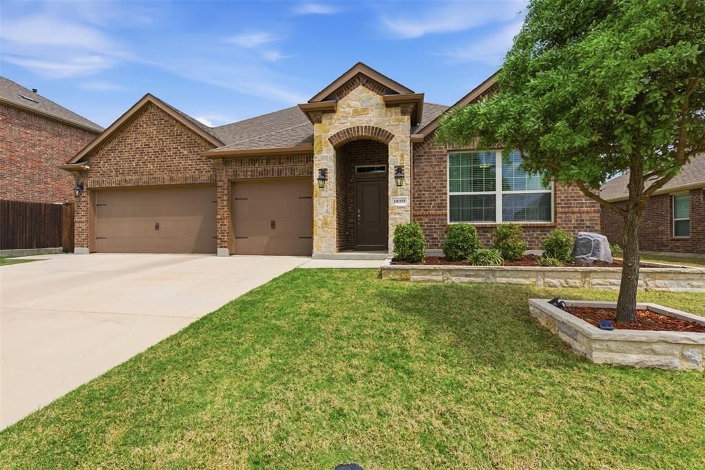 Immaculate and spacious, this *rare* single story Boseley plan showcases a three-car garage and premium pond facing lot with serene views. Designed for both entertaining and effortless maintenance, the home features sparkling white kitchen cabinetry with quartz counters, abundant storage, and plentiful counter space for all of your appliances. Durable and allergen free rich wood look tile throughout..completely carpet free. A centrally located small pocket office nook with custom cabinetry and desk creates a unique hub for daily organization. Private and secluded master retreat with large garden tub and shower with dual sinks makes getting ready easy. No time for boredom w Silverado's amenities: multiple pools, splash pads, clubhouse, pickleball, basketball & tennis courts, walking trails, parks, playgrounds and community catch & release ponds! Prime location w an easy commute to Dallas, Fort Worth, Frisco & close to major shopping, entertainment and colleges UNT & TWU.