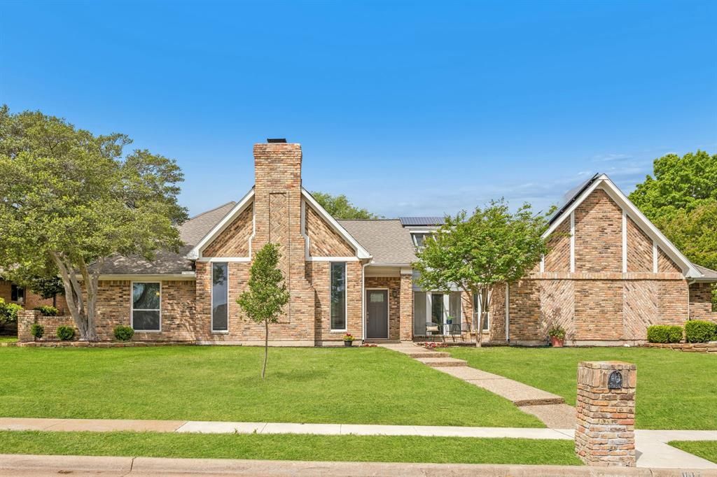 Welcome to 1017 Dartbrook Dr. in the desirable Pitman Creek Estates, complete with PAID~OFF SOLAR panels for added efficiency and savings! This thoughtfully designed layout offers wood flooring throughout, 3 bedrooms downstairs, and a spacious upstairs suite with full bath—perfect as a game room, office, or guest space. Kitchen includes a gas cooktop, granite counters, walk-in pantry, and a large island for prep and entertaining. The primary suite overlooks the charming front courtyard and features a spa-like bath with soaking tub, dual sinks, ample storage, and dual walk-in closets. A versatile enclosed sunroom adds extra living space and opens to the large private backyard with fruit trees. Updates include fully paid for solar panels ('22), upstairs HVAC ('17), & water heater ('20). Storm shelter in the garage provides added peace of mind and driveway can accommodate additional parking for trailer, small RV or boat. Located in a prime, established community with quick access to 75 and George Bush Turnpike, and close to shopping, dining, and entertainment in Plano, Richardson, and Addison. Zoned to highly rated Plano ISD.