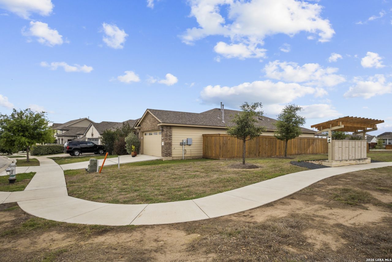 Welcome to this beautifully maintained 4-bedroom, 3-bath home located on a desirable corner lot in San Marcos. This home offers a spacious and open-concept layout, perfect for both everyday living and entertaining. The kitchen is a true centerpiece, featuring a large island with a breakfast bar, sleek countertops, stainless steel appliances, and gas cooking. It opens seamlessly to the expansive living room, where natural light pours in, creating a bright and inviting atmosphere. The flooring throughout the home has been replaced and there is no carpet, offering a clean, modern look and easy maintenance. The private primary suite offers a relaxing retreat with a spacious layout, a walk-in closet, and an ensuite bath complete with a double vanity, separate shower, and soaking tub. Step outside to enjoy the covered back patio and a large backyard with unobstructed sunset views, providing the perfect setting to unwind or host gatherings. Conveniently located with easy access to IH-35 less than a mile away, this home offers a prime location between Austin and San Antonio, making commuting a breeze. Enjoy being just one exit away from the renowned San Marcos Premium Outlets for top-tier shopping, dining, and entertainment. Plus, a new H-E-B is coming soon to the area, adding even more convenience and value. Residents also enjoy access to community amenities, including a swimming pool, playground, and sports courts. Dont miss the opportunity to own this well-appointed home in a growing and convenient San Marcos location.