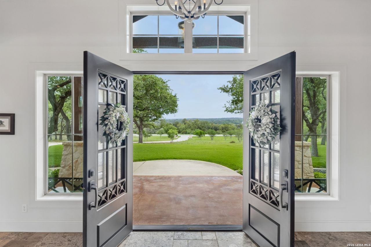 A rare offering, this custom modern ranch estate, set on 15.41 acres, pairs curated architecture with bespoke details at every turn. Crafted for sophisticated Hill Country living and distinguished by premier equestrian amenities, the home was thoughtfully designed with an emphasis on indoor-outdoor living. An elegant open-concept floor plan is framed by walls of glass, creating a seamless connection to the surrounding natural landscape. The gourmet double-island kitchen is a showpiece with stone countertops, professional-grade stainless steel Thermador appliances, a six-burner double gas range, two sinks, exquisite custom cabinetry, and a large walk-in pantry. The grand living room showcases historic reclaimed wood beams, an awe-inspiring stone fireplace that overlooks the picturesque pool and spa. The intentionally designed interior offers four spacious bedrooms, each with a private en-suite bath. The luxurious primary suite is down with a spa-inspired bath, an oversized walk-through shower, two separate vanities, two separate walk-in closets and offers direct outdoor access to the screened porch and backyard sanctuary. The main level guest suite is secluded with a full en-suite bath and private outdoor access to a covered terrace designed to capture sweeping tranquil views. The spacious third bedroom is upstairs and offers a full en-suite bath and private outdoor access to a covered balcony overlooking serene vistas and pastoral views. Outside of the bedroom, custom cabinetry with a coffee station and beverage refrigerator thoughtfully connects to the fourth bedroom and fourth en-suite bath. A dedicated office is on the main level which can easily serve as a flex space or game room. Conveniently positioned between the kitchen and garage, the spacious laundry room features a built-in sink, an additional refrigerator and a custom-built Thermador wine fridge. The notable half bath completes the interior and offers direct outdoor access to the luxurious pool and spa. The polished 3-car garage is attached with epoxy finished floors and a separate workshop that offers versatile additional space and is presently utilized for beekeeping providing the current owner with an agricultural tax exemption. The outdoor living space unfolds as a peaceful retreat featuring a heated pool and spa, a prestigious covered patio, kitchen and fireplace, multiple terraces and professionally landscaped grounds, offering an unapparelled resort-style experience at home. Additional amenities include a raised vegetable and herb garden, a private well with a 5,200-gallon storage tank and a state-of-the-art geothermal heating and cooling system offering state-of-the-art energy efficiency and comfort. Set within the quiet, gated neighborhood of Rebecca Creek Ranches in Comal County, this extraordinary estate enjoys convenient proximity to New Braunfels, Boerne, San Antonio and Austin. Served by the highly acclaimed Comal Independent School District and zoned to the sought-aft