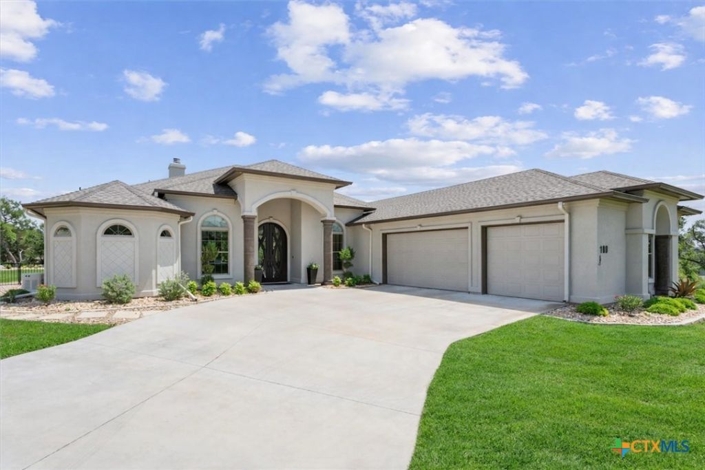 Luxury custom home on a private cul-de-sac in The Cliffs at Lake Belton featuring a flexible office/media space, heated and cooled 3-car garage, and resort-style outdoor living. Built in 2022, this custom home offers 2,917 sq ft, 3 full baths, 18-foot soaring ceilings, and travertine flooring throughout with no carpet. The open layout features a high-end kitchen with marble countertops, premium appliances, and abundant cabinetry. The 910 sq ft 3-car garage includes epoxy floors and built-in speakers. Additional features include a whole-home generator, tornado/storm shelter, and Control4 smart-home system. Outside, enjoy a resort-style backyard with heated pool and spa, swim jets, outdoor kitchen, professional landscaping, and integrated sound. Located within the highly sought-after Belton Independent School District and just moments from the scenic Lake Belton, this home seamlessly combines elegance, functionality, and an unbeatable location.