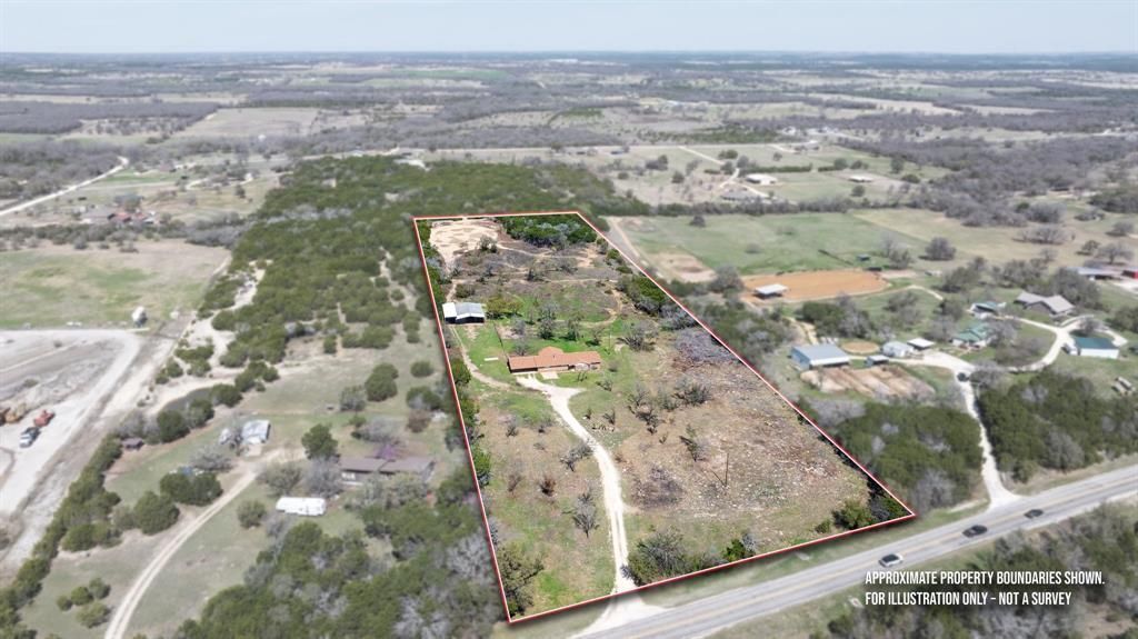 10-acre horse property located just outside Stephenville, approximately 6.8 miles from downtown Stephenville and 5.2 miles from 377 Arena. The 3-bedroom, 2-bath brick home offers approximately 2,190 square feet with an open floor plan that includes two living areas anchored by a wood-burning fireplace, with the dining area located just off the kitchen. Flooring has been updated throughout the home, with brand new flooring in the bedrooms, and additional interior updates include fresh paint, new ceiling fans, updated door hardware, a remodeled hall bathroom, and a new dishwasher. The home also includes a large laundry room and a dedicated office space. A covered back patio overlooks the horse pasture and connects to a large fenced backyard, providing comfortable outdoor space for relaxing or entertaining. Horse improvements include a roughly 35x60 barn with four stalls with turnout into a pasture, along with a large tack and feed room running along one side of the barn and an additional storage area. Water lines, electricity, and lighting have been added, and a 16-foot covered area provides space for trailer or RV parking with a 30-amp plug. A roughly 120x200 open riding arena provides space for riding or training. The acreage is mostly flat with native grasses and a mix of cedar and hardwood trees, with more open pasture toward the back of the property. The property has direct frontage on FM 205 with a gravel drive providing access from the road. The home operates on well water and septic and features all-electric appliances, offering a rural setting while remaining convenient to Stephenville. Seller will consider offering up to $10,000 toward buyer closing costs or concessions.