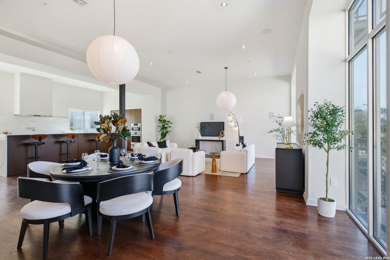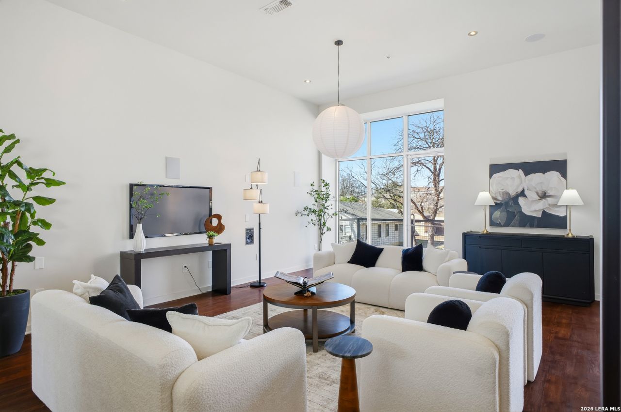 Perfectly positioned in the heart of Tobin Hill-just steps from San Antonios iconic Pearl District-1136 E Quincy Street offers a rare fusion of modern luxury, panoramic city views, and true lock-and-leave urban living. Rising four stories above one of the citys most walkable neighborhoods, this exceptional townhome features an oversized two-car garage, multiple balconies facing the vibrant Pearl area, and a private elevator serving every level for effortless access. Inside, sophisticated design meets thoughtful craftsmanship throughout. A newly renovated custom kitchen anchors the main living level with designer finishes, premium appliances, and generous prep and storage space, making it an ideal setting for both intimate meals and lively gatherings. Hardwood floors enhance the warmth and elegance of the living spaces, while expansive windows frame skyline views and bathe each floor in natural light. All bathrooms have been newly refreshed, adding comfort and modern refinement to the homes aesthetic. The ground floor offers a welcoming guest retreat with a private bedroom and full bath-perfect for hosting visitors or accommodating extended stays-along with the convenience of an oversized two-car garage. On the second floor, the beautifully renovated custom kitchen opens to a spacious great room, creating an inviting flow for everyday living and entertaining. The third floor features two additional bedrooms, a refreshed full bath, and a flexible space ideal for reading, TV watching, or quiet relaxation. The fourth floor is reserved entirely for the owners private suite and includes an inviting office or reading room, generous sleeping quarters, and a luxurious bathroom with oversized dual closets. The crown jewel of this level is the private terrace offering sweeping 180-degree views towards downtown. Thoughtfully designed for exceptional outdoor living, it is plumbed for a gas grill and includes a hose bib perfect for urban gardening. Its orientation makes it the ideal place to enjoy New Years fireworks displays from both Downtown and Fort Sam Houston-an unforgettable setting for evenings under the city sky. Outdoor spaces continue throughout the home, with multiple balconies capturing views of the lively Pearl area and the surrounding cityscape. While the second and third floors face toward the Pearl neighborhood, the fourth-floor terrace provides dramatic, panoramic views that elevate daily living and entertaining alike. Beyond the beautifully curated interior, the location is simply unmatched. From your front door, youre just moments from The Pearl, Hotel Emma, Ottos Ice House, River Walk access, Pullman Market, local boutiques, and some of San Antonios most beloved restaurants and cafes, placing daily conveniences, weekend outings, and cultural experiences all within effortless reach. 1136 E Quincy Street is more than a home-its a lifestyle. Modern architecture, elevated finishes, refreshed bath