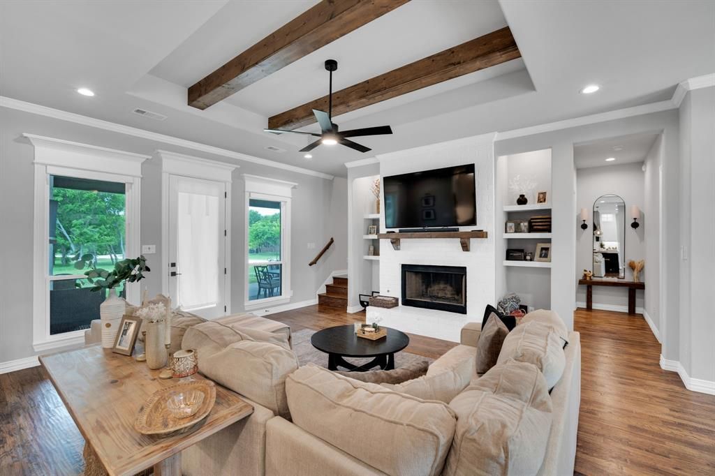 Stunning modern farmhouse on a spacious 1-acre corner lot in a sought-after Midlothian community, showcasing timeless curb appeal and thoughtful design throughout. Step inside to a beautifully designed living space where comfort meets style, featuring rich wood flooring, a striking beam-accented ceiling, and abundant natural light. The open-concept layout flows seamlessly into a chef’s kitchen with a large quartz island, custom cabinetry, stainless steel appliances, designer lighting, and a statement vent hood. This 4-bedroom, 3.5-bath two-story floor plan offers a private upstairs retreat with a loft, gameroom, two bedrooms, and a full bath—perfect for guests or family. The spacious primary suite provides a relaxing escape with room to unwind, while the flexible layout offers versatility for a home office or additional living space. Enjoy peaceful outdoor living with plenty of room to create your dream backyard, add a pool, or simply take in the wide-open space. This home truly blends luxury, functionality, and comfort in an ideal setting.