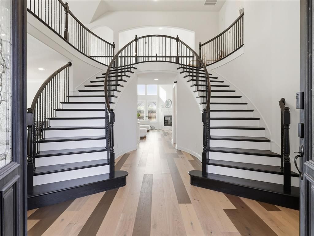 Not your typical floor plan! This one was designed to stand out. Perfectly positioned next to the community walking trail and with extra parking in front, this beautifully designed home offers space, functionality, and standout character. A dramatic double staircase welcomes you into an open, light-filled layout ideal for everyday living and entertaining. The first floor features a private guest bedroom with a full bath, tucked away for added privacy—perfect for visitors or multi-generational living. Abundant storage is thoughtfully integrated throughout, making organization effortless. Bench window seats placed throughout the home add warmth, function, and impressive architectural charm. Upstairs offers versatile living with a game room loft, open media room, and elevated reading nook. A designated bar area and oversized utility room enhance everyday convenience. Come experience a layout that truly lives differently. Schedule your showing today!