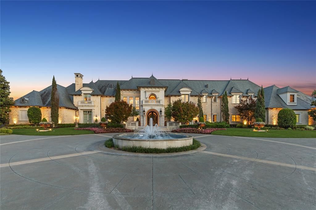 Welcome to Château Lumièr, a private, gated estate nestled on 15 wooded acres with coveted ag exemption, three stocked ponds with fountains, and rare serenity in the heart of McKinney, south of SH 380. Masterfully crafted by Sharif Munir from the finest materials and designed with French Chateau elegance in mind, this architectural jewel balances grandeur and intimacy across every inch. Step through double iron doors into soaring ceilings, gold leaf accents, and handmade Bordeaux flooring. Entertain effortlessly in formal and casual spaces alike, each adorned with bespoke finishes: groin vault ceilings, coffered beams, antique appliqués, and Italian marble. The chef’s kitchen is outfitted with luxury appliances, hand-painted tiles, and custom maple cabinetry, anchored by an impressive China and Silver Room featuring Carrera marble and herringbone wood floors. The Great Room commands attention with cathedral-beamed ceilings and five sets of French doors opening onto the veranda, overlooking manicured grounds and outdoor living anchored by a fireplace and full kitchen. The owner’s wing includes dual bathrooms, dual closets, a second office, a fireplace, a workout room, and breathtaking views. Wine connoisseurs will appreciate the climate-controlled wine room and film lovers, the private media suite with digital projection. A whole home generator, 1000' deep private well, and an elevator reflect the estate’s blend of beauty and self-sufficiency. Relax and enjoy panoramic views from every room of this residence. Additional features include spacious bedroom ensuites with luxe finishes, separate guest quarters with private entrance, full kitchen and 2 bd 2 bth; a mahogany study with pocket office & imported African marble; game + craft rooms, a playhouse with electricity. Château Lumièr isn’t simply a home, it’s a legacy property where artistry meets livability in a world of its own. Attends McKinney ISD.