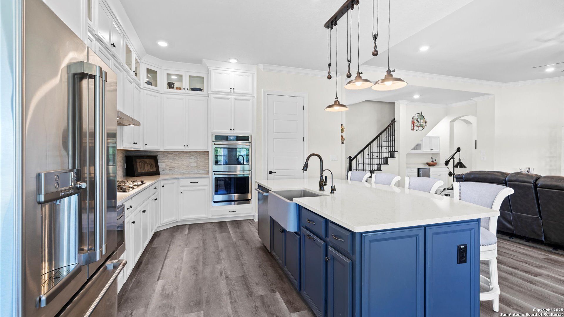 This beautifully designed home blends luxury and functionality in the highly sought-after master-planned community of Vintage Oaks. From the moment you step inside, youll be greeted by an open and airy layout with tray and coffered ceilings, abundant natural light, and thoughtful details throughout. With 4 spacious bedrooms all located downstairs, plus multiple living and flex spaces, this home offers versatility for your lifestyle-whether youd like a playroom, craft space, exercise room, or private office. Upstairs, enjoy the option of a 5th bedroom with its own full bath and closet, perfect as a mother-in-law suite, or use the area as a game/media room. Entertaining is effortless with an open floor plan, wet bar in the family room, and a cozy study at the front of the home-ideal for remote work or reading. The chefs kitchen is a true highlight, featuring high-end stainless steel appliances, a farmhouse sink, natural gas cooking, and ample counter space for gourmet meals and family gatherings. A convenient mud room provides extra storage and organization, while the 28-foot oversized 3-car garage with epoxy flooring offers both functionality and a polished finish. The luxurious owners retreat is complete with a spa-like bathroom offering a soaking tub, oversized walk-in shower, dual vanities, and two generous walk-in closets. Step outside to a covered patio overlooking the Texas Hill Country, and enjoy your acre of land complete with a fire pit for unforgettable evenings under the stars. Living in Vintage Oaks means access to premier amenities, including a fitness center, multiple pools, a lazy river, walking and biking trails, sports courts, concerts in the park, and a robust calendar of community events. Dont miss this rare opportunity to own a stunning home in Vintage Oaks-with $4,000 in buyer concessions to make your move even easier!