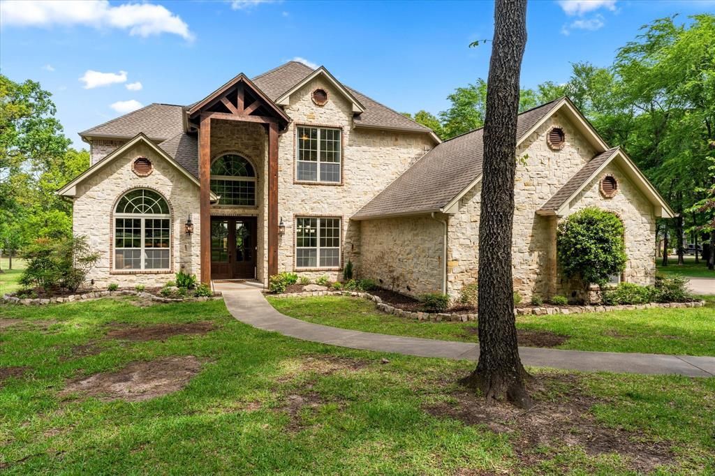 Nestled in the prestigious Links at Land’s End on world-famous Lake Fork, this stunning stone-and-brick waterfront home offers the perfect blend of luxury, comfort, and lifestyle. Situated on 1.32 deeded acres plus approximately 0.7 acres of leaseback, the property provides space, privacy, and exceptional waterfront access. Spanning 3,889 square feet, this beautifully updated home features 4 bedrooms, 3.5 baths, and a 3-car garage. Recent improvements include fresh contemporary paint throughout, updated window treatments, and new epoxy finishes in both the garage and around the pool, giving the home a clean, modern feel. The gourmet kitchen is a chef’s dream with double ovens, gas cooktop, granite countertops, and a center island. Two living areas offer flexibility, including a formal living room with a wood-burning fireplace and a relaxed family room off the kitchen. The layout also includes a formal dining room, private study, and a versatile flex room (14’ x 9’). The primary suite is complemented by a second upstairs primary suite, ideal for guests or multigenerational living. Outdoors, enjoy a true retreat with mature oak trees, a covered outdoor kitchen, and a beautiful in-ground gunite pool with epoxy surround. Approximately 100 feet of shoreline with retaining wall leads to a covered boathouse with w water depth of 6’ at full pool., providing direct access to Lake Fork. Located in Land’s End, residents enjoy premier amenities including a restaurant, golf course, pool, pavilion, boat launch and world-class golf in The Links at Land’s End. With limited waterfront inventory, this updated Lake Fork property is a rare opportunity to own a luxury home in one of East Texas’ most sought-after communities.