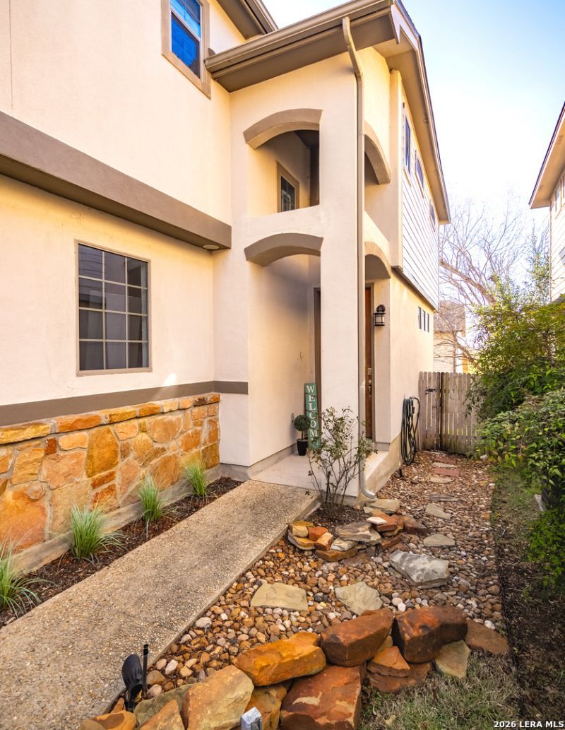 Spring time is here! Come relax outside in an "in-ground" hot tub and swimming pool. This backyard oasis sets this house from all others. This house was the model home initially for the subdivision. House features an advanced plumbing system. Kitchen features nice granite countertops, stainless steel appliances, and glass backsplash. This 3 bedroom house has no carpet. The primary bedroom features a nice garden tub, granite counter tops and a spacious walk in closet. This subdivision has a private entrance to Stone Oak Park on Andrews Garden with trail and playground. Amazing dog play park too. New roof and new dishwasher installed in 2024. New garbage disposal in 2025. This is a great valued home.
