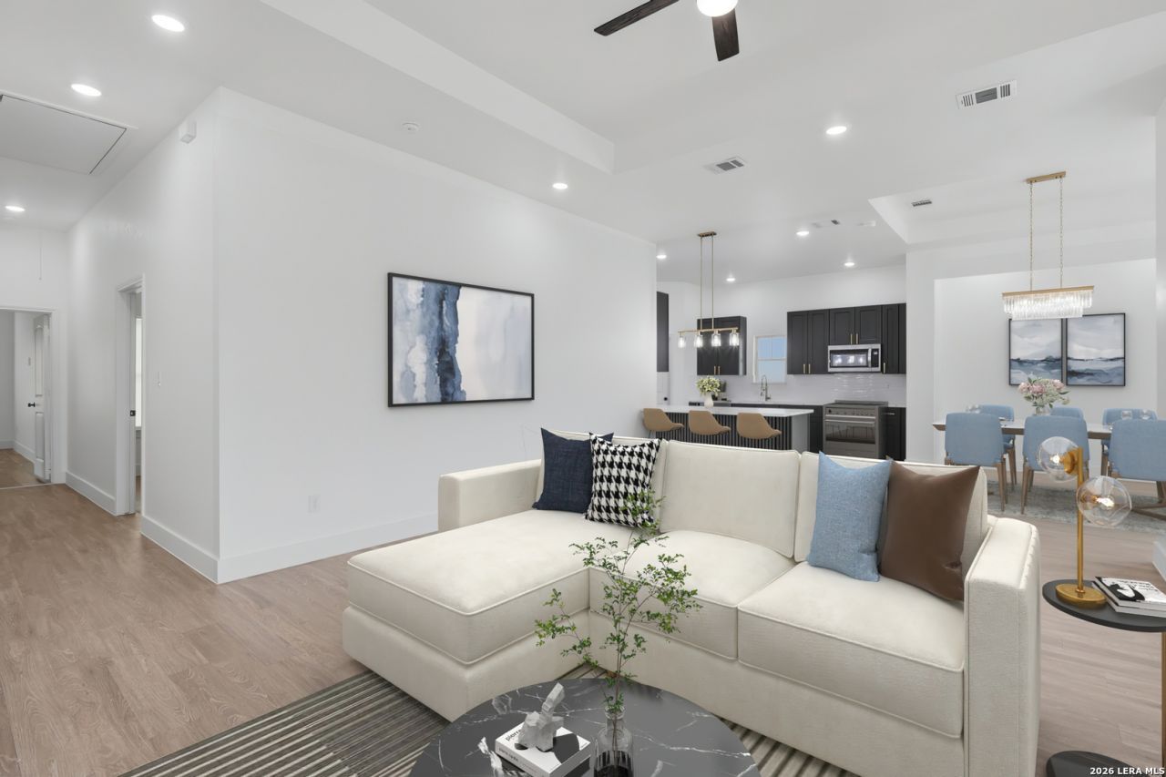 Welcome to this beautiful home situated on over a half-acre lot in the peaceful countryside of Atascosa, TX, just minutes from the city, offering freedom, space, and no HOA dues! This property features a versatile layout with 4 bedrooms and 3 full bathrooms, which includes two primary suites, providing flexibility for guests or multi-generational living. The home is designed with an inviting open-concept floor plan, high ceilings, recessed lighting, and elegant finishes throughout. The heart of the home is definitely the kitchen, complete with quartz countertops, a large island, stylish backsplash, ample cabinetry, and stainless steel appliances, perfect for entertaining, family gatherings, or everyday living. The main primary suite offers a spacious bedroom and a gorgeous ensuite bathroom with a custom-tiled walk-in shower, dual vanity, and his and hers closets, while the additional bedrooms offer flexibility for guests, family, or a home office. Outside, the expansive front and back yards provide endless opportunities for gatherings, recreation, or future additions. Combining comfort, style, and peaceful country living , this home is truly a must-see and ready for its new owners!