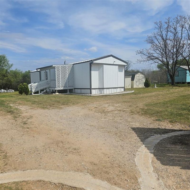 Impressive two bedroom one bath home with large living area open to eat in kitchen with gas range on just over 1 fenced acre that has a seasonal creek at rear of property. Full washer and dryer hook ups are located in hallway right between the two bedrooms .One thing unique about property are the small boxed in trees inside fence and just outside of fence lines that have a timed sprinkler system to each boxed in tree. There are two storage buildings, one with electricity that would make a small shop for dad and his tools. It's unrestricted and minutes to major highways to the bigger cities of Mineral Wells and Weatherford and that means shopping too.