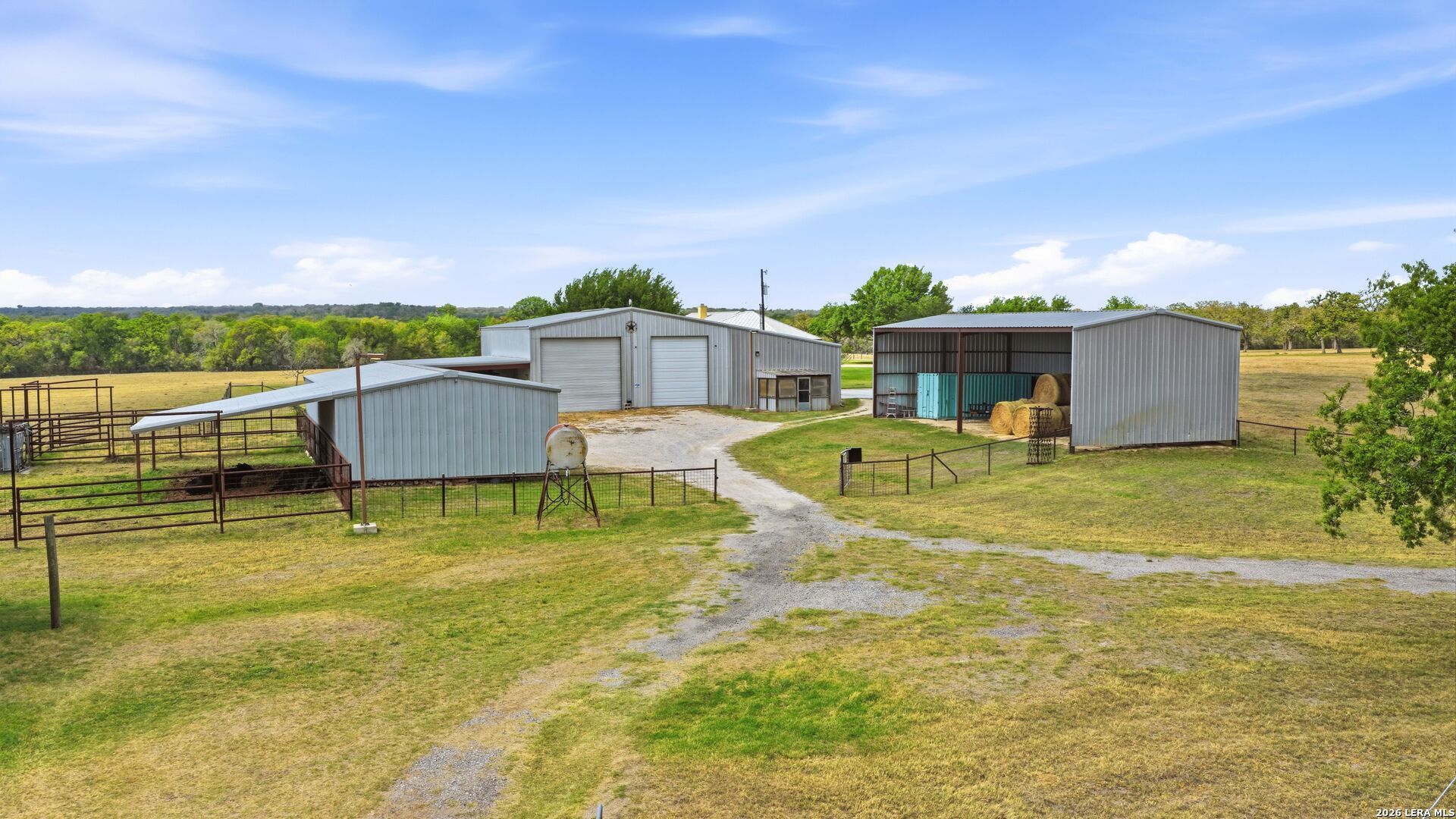 Experience refined ranch living on 155 breathtaking acres in Kingsbury, where luxury amenities meet exceptional land stewardship and future development potential. Anchored by a gorgeous 4,000 SF custom home, this estate showcases detached guest suites, granite counters, stainless steel appliances, custom bath and shower finishes, and a sprawling covered back porch designed for elevated outdoor living. A resort-style pool and spa overlook rolling pastures and uninterrupted country views that stretch for miles. Additional improvements include a large 3000 sf detached 4car garage, with two oversized indoor RV bays and overhead rollup doors (as well as a small live/work office suite, offering flexibility for personal use, staff, or hobby space), multiple storage sheds, and a mobile home on the far east side-complete with its own water and septic-provide multiple living, rental, or operational options. The ranch is fully functional for livestock with cross-fencing, a corral, and squeeze chute, and currently supports cattle. Its gently rolling terrain, mature trees, and open pastures create an ideal setting for a luxury private ranch, dude ranch retreat, or multigenerational estate. For investors and developers, the property includes a conceptual 7tract subdivision plan (12-30 acres) suitable for a boutique residential community or mixed-use development. Hwy 90 frontage offers visibility and access for potential future commercial sites, while interior tracts maintain privacy and scenic appeal. Property may be purchased as a whole or with subdivision options.