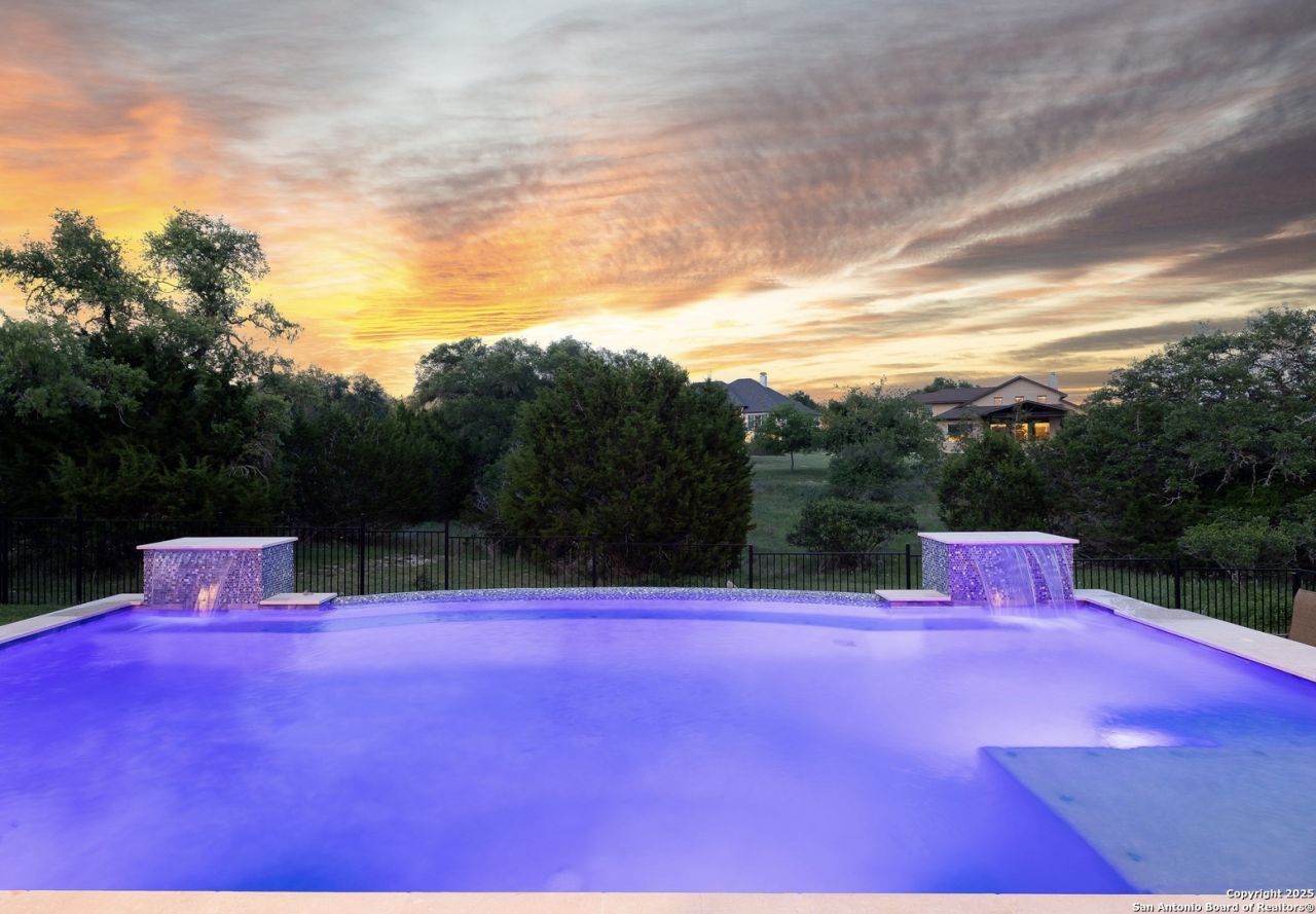 Stunning, nearly new one-story home that is just 4 years old nestled in a quiet cul-de-sac in the highly sought-after Vintage Oaks community! Step through elegant double front doors into a grand extended entryway with soaring 13-foot ceilings, setting the tone for the spacious, light-filled interior. A dramatic wall of windows and a cozy fireplace anchor the open-concept family room, creating the perfect space for both relaxing and entertaining. The chefs kitchen is a true showstopper, featuring an oversized island, walk-in pantry, and a stylish butlers pantry for added functionality. Enjoy movie nights in your private media room or host game nights in the dedicated game room, this home is built for both comfort and fun. The luxurious primary suite offers a peaceful retreat with a tray ceiling and a curved wall of windows. The spa-like en-suite bath includes a corner garden tub, glass-enclosed shower, dual vanities, linen closet, and two spacious walk-in closets. Three additional bedrooms each feature walk-in closets and convenient access to a full bath. Step outside to your own backyard oasis complete with a covered patio and in-ground pool that is perfect for year-round enjoyment and entertaining. Additional highlights include a mudroom with extra storage and a spacious three-car garage. Combining modern design, thoughtful layout, and like-new construction, this home truly has it all so schedule your private tour today!