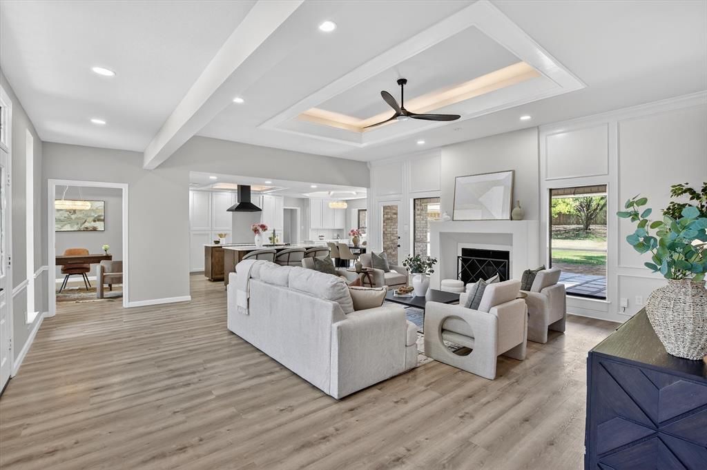 Nestled in the heart of the highly sought-after Greenbriar Estates, just moments from the tranquil beauty of Ten Mile Creek, this fully renovated residence offers a rare opportunity to experience refined living in one of Duncanville’s most cherished, tree-lined neighborhoods. Thoughtfully redesigned with both elegance and everyday functionality in mind, the home blends modern luxury with timeless comfort. The living spaces are elevated by designer finishes, including a custom modern concrete gas fireplace and subtle cove lighting that creates a warm, inviting ambiance. At the heart of the home, the kitchen is both a gathering place and a functional showpiece. Featuring custom, soft-close cabinetry, it is anchored by two thoughtfully designed islands offering ample prep space, storage, and room to gather. The layout flows seamlessly into the dining area, where custom built-ins provide additional storage and a beautiful place to display décor. The overall feel is elevated yet inviting, designed for connection and everyday living. The primary suite serves as a true private retreat, featuring a spa-inspired ensuite complete with a freestanding soaking tub, rain shower, and curated finishes that evoke a sense of calm and sophistication. In addition, the home offers a second private ensuite, a rare and highly desirable feature, providing exceptional flexibility for multi-generational living, long-term guests, or a truly elevated secondary primary experience.Step outside to an expansive backyard designed with future possibilities in mind. A custom brick and paver patio creates the perfect setting for entertaining or quiet evenings, all overlooking a generously sized yard with space for a future pool. A rear-entry garage enhances both privacy and curb appeal, completing this thoughtfully designed home.