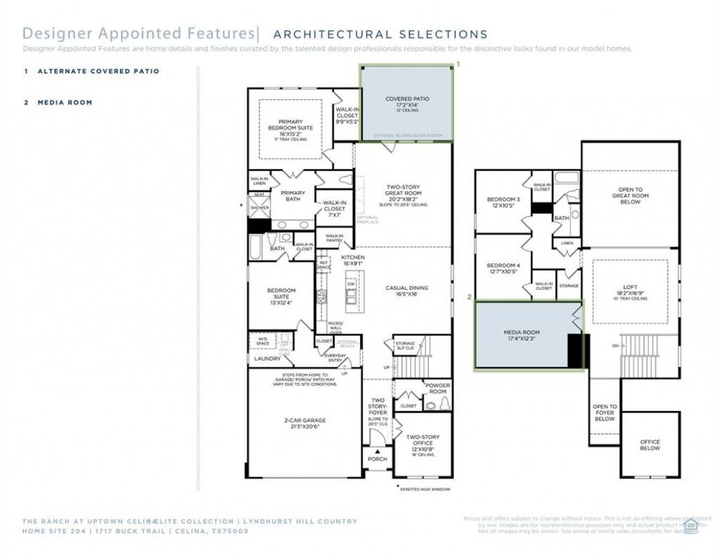 Stunning Toll Brothers new construction located in the highly sought-after master-planned community of The Ranch at Uptown Celina. This thoughtfully designed home showcases distinctive Hill Country architecture paired with exceptional craftsmanship and designer-appointed finishes throughout. The open-concept floor plan features soaring ceilings, a two-story great room, media room, and flexible living spaces ideal for both everyday living and entertaining. The gourmet kitchen is beautifully appointed with quartz countertops, custom stained cabinetry, stainless steel Whirlpool appliances including gas cooktop and built-in oven_microwave, and hardwood flooring that flows through the main living areas. The private primary suite offers a spa-inspired bath with quartz countertops, dual vanities, oversized walk-in shower with designer tile selections, and elegant fixtures. Additional bedrooms are well-sized with stylish baths and quality finishes. An alternate covered patio extends the living space outdoors, perfect for relaxing or hosting guests. Located within Celina ISD and zoned to Martin Elementary, Celina Middle School, and Celina High School, this home offers both convenience and lifestyle. Enjoy easy access to the Dallas North Tollway and Preston Road, with close proximity to shopping, dining, and entertainment in Downtown Celina, Prosper, and Frisco. A perfect blend of luxury, location, and livability—this Toll Brothers home is an exceptional opportunity in one of Celina’s premier communities.