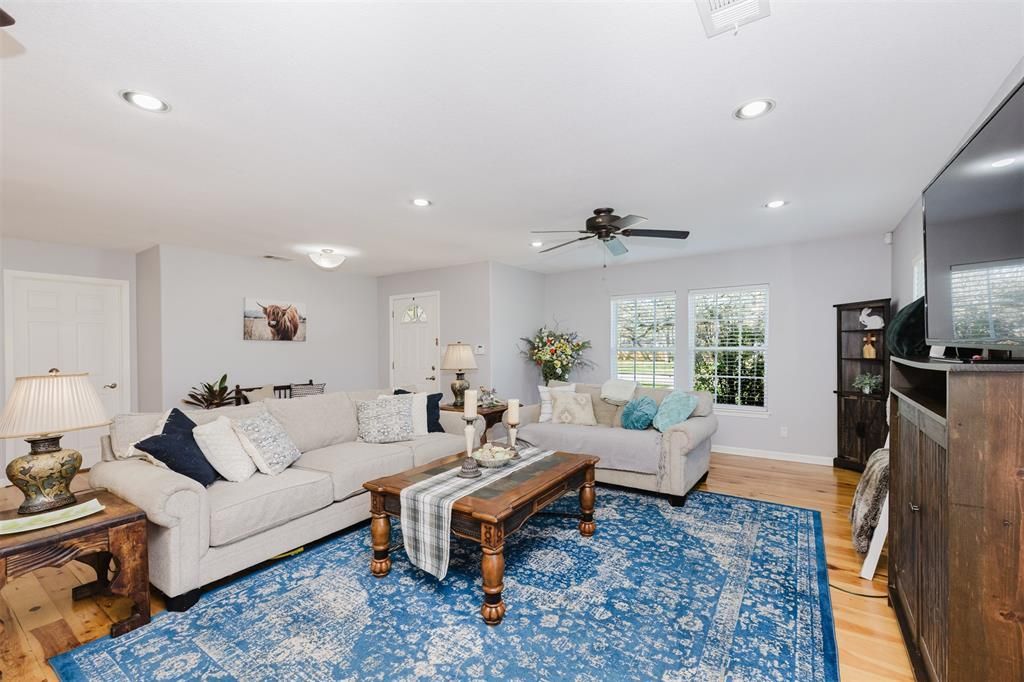 Beautiful Brownwood, TX home on expansive .44-acre corner lot, built-in fire-pit gazebo, covered RV parking (elec. hook-up), storage shed, oversized carport, mature trees. 2,404 sq. ft. 3 beds, 2 baths + Game room (Man-cave). Modern open floor plan with hardwood floors. Spacious kitchen features crisp white cabinets, built-in double ovens & microwave, gas stove, stainless appliances, recessed lights, & breakfast bar. The primary bedroom suite is a true retreat, with direct access to the outside deck, a huge walk-in shower, dual sinks, separate vanity area, space for electric fireplace & double closets. Game-room (Man-Cave) built-ins include a wet-bar + sink, space for bar fridge, a desk, lighted cabinet displays, lockable gun-safe, & direct access to the backyard and deck. Covered RV Parking with power. Multiple outdoor spaces of decking & grass in the fully fenced yard. Gorgeous copper-colored metal roof. This home offers a lifestyle of comfort, functionality, and endless possibilities.