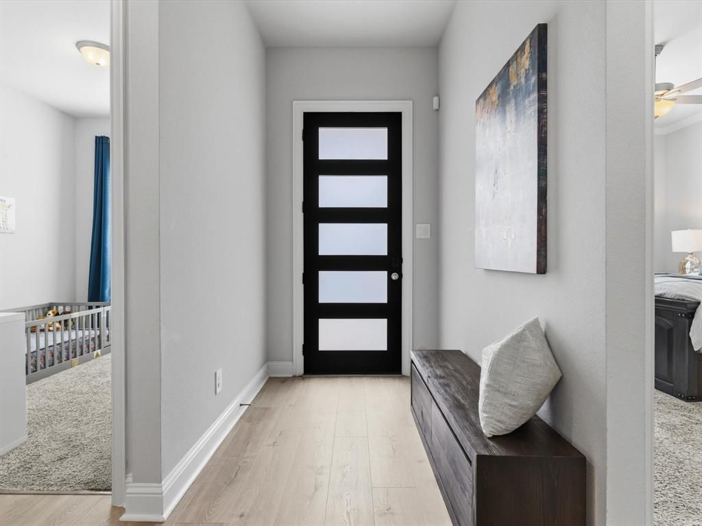 Back on market! Buyer was unable to obtain financing approval. Breathtaking designer dream home on a corner lot loaded with upgrades and truly checking every box! The thoughtfully designed main floor features your primary suite along with a private office or mother-in-law suite complete with an adjacent full bath! Unwind in your spacious primary bedroom with a stunning spa-inspired ensuite bath with dual vanities, an oversized doorless walk-in shower adorned with gorgeous floor to ceiling Calacatta Empire designer tile. At the heart of the home, you’ll find a show-stopping chef-style kitchen featuring sleek stainless steel Whirlpool appliances, a 5-burner gas cooktop, dual-bowl stainless steel sinks, upscale quartz countertops, elegant geometric tile backsplash, a sleek stainless steel vent hood, spacious center island with stylish pendant lighting, and striking floor-to-ceiling cabinetry! Upstairs, discover two additional bedrooms, an expansive game room, and a theatre-style media room, ideal for the kids hangouts and family movie nights. Additional upgrades include: Living room accent wall, custom wood shelving, added recessed lighting, 8' Mahogany door with frosted glass, raised stone pavers landscaping beds, Overhead garage storage racks and so much more! Get with agent for a full list of upgrades. Located in the highly sought after Mercer Crossing Master-Planned Community featuring an amenity center, gym, dog parks, playgrounds, lakes, and extensive walking trails. Location is unbeatable with easy access to 635, 35, President George Bush Turnpike, both airports, and countless shopping and dining options.