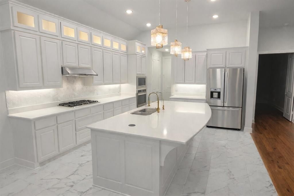 Outstanding single story house with high ceilings and energy star rating in a booming Location in prestigious Rockwall. Single story ranch style house with 4 Bedroom and office Room with 3 and a half Bathroom. Large Living open to a modern kitchen with many additional feutures and a second Kitchen for your convenience. Good size office room apt for professionals. High ceilings, Light and Bright, wood floor throughout house, wet areas with tiles. Ceiling fans in every room, mud room, Upgraded with new chandliers. Tankless water heater. peaceful backyard with wooden fence on steel posts. custom light feutures. Tons of upgrades and see the list of additional upgrades done by owner in attached List. Peace in backyard across from green belt. Bay window, walking closets, extended patio and fence. Great schools. wonderful Lake view is amazing while you travel out to dallas. costco, home depot and all kind of dealerships and shopping not far from here. Lots of new developments coming around here. Go and see the property for its amazing tranquility and serenity to enjoy your life. week end enjoyment can be in the great Lake Ray Hubbard and afterwards in all types of eateries is not far from the house. Buyer and buyers agent to varify all measurements and information.square feet inclusive of the 4th garage was converted to 2nd kitchen and mudroom. there is a additional store space made in garage.owner is open to seller finance with substantial down, property can be leased by qualified personnel. Call listing agent for more details.