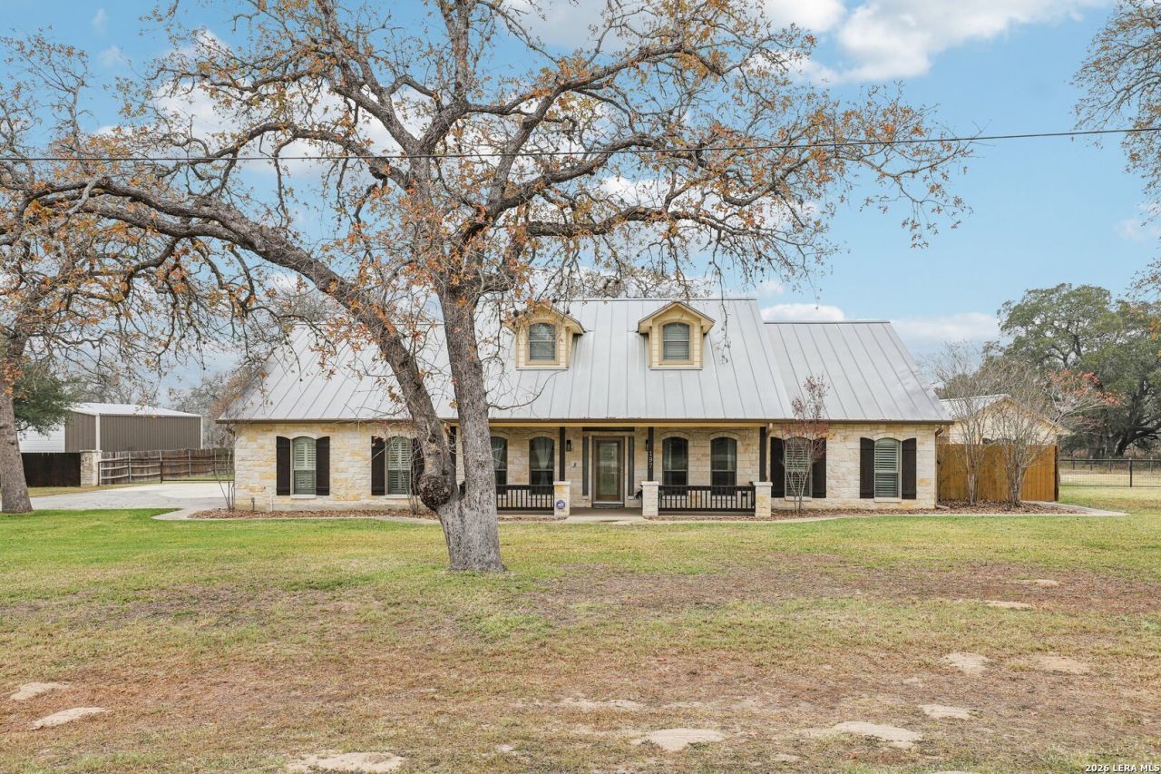 NEW PRICE IMPROVEMENT! Beautiful Texas Ranch-Style Rock Home with a Casita and a Detached Workshop on Over an Acre of land! This home is located on a quiet street in the highly sought-after Vintage Oaks Ranch subdivision. The 2,752 sq ft main residence offers a large living area, two dining spaces, 3 bedrooms, and a dedicated home office. The kitchen is highlighted by custom cabinetry, granite countertops, and a walk-in pantry. The detached 266 sq ft flex space with 1/2 bath provides endless possibilities-perfect for a game room, home gym, or guest quarters. Backing to wooded acreage, the home offers exceptional privacy and peaceful country views, best enjoyed from the fabulous covered back porch. Well maintained and truly move-in ready, this home delivers the best of country living while remaining less than 30 minutes from San Antonio. Schedule your showing today!