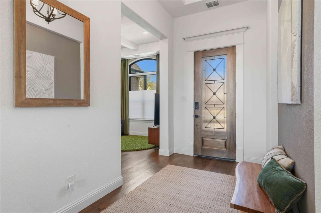 Stunning single-story, north-facing home in the highly sought-after Star Trail neighborhood. Thoughtfully designed from a model plan and extensively customized with over $170,000 in upgrades. This exceptional property offers a rare 4-car garage and sits on an oversized lot with beautiful, professionally designed landscaping that provides incredible privacy—especially when the surrounding trees are in full bloom, as all neighboring homes are single story. Inside, you’ll find a highly functional and versatile layout where every bedroom features its own ensuite bathroom, offering comfort and privacy for family and guests alike. A custom hearth room just off the dining area creates a warm and inviting space perfect for gathering and entertaining. The home is ideal for multi-generational living or growing families, with custom lofts in two bedrooms adding both charm and functionality. The gourmet kitchen features a custom oversized Taj Mahal Quartzite island and is equipped with double ovens, double dishwashers, a walk-in pantry, and ample space for everyday living and hosting. Additional upgrades include a whole-home water filtration system for enhanced comfort and convenience. This one-of-a-kind home blends luxury, practicality, and thoughtful design in one of Prosper’s premier communities