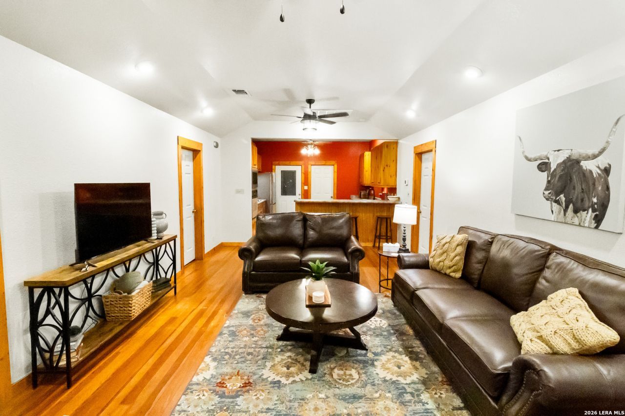 Charm, style, and good vibes await at this beautiful 3-bedroom, 2-bath home in Poth! Offering 1,606 square feet of inviting space on a huge .38-acre lot, this one is packed with personality and ready to impress! Located just 1 block from Poth Elementary and in an area known for excellent schools, the location is just as amazing as the home itself. Step inside and fall in love with the open floor plan perfect for entertaining , decorator colors , plantation shutters , and gorgeous rustic natural wood cabinetry that adds warmth and character throughout. The kitchen is ready for action with stainless appliances , a built-in oven, breakfast bar , and plenty of space to gather. The spacious primary suite is your private retreat featuring a luxurious ensuite bath with a spa tub , walk-in shower , and room to unwind in comfort. Outside, the fun keeps going with lovely landscaping , tons of yard space on the oversized lot, and a fenced backyard perfect for pets, play, or weekend BBQs . This home is full of charm, loaded with features, and ready to make your next move exciting!
