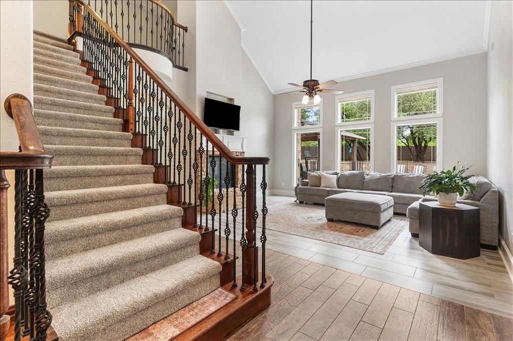 Welcome to your private retreat in Mansfield, Texas. Situated on a spacious .44 acre lot in a quiet cul de sac, this beautifully updated 4 bedroom, 2.5 bath home offers 3,377 square feet of comfort, flexibility, and outdoor living at its finest. The primary suite is conveniently located downstairs, while upstairs features generously sized secondary bedrooms and a versatile bonus room that can serve as a media room, game room, or inlaw suite with plumbing in place so a future bathroom can be added. Step outside and fall in love with the completely remodeled backyard oasis. The sparkling pool has been upgraded with new coping, tile, pebble tech plaster, waterfall feature, and pool fence. Enjoy extended concrete decking, a pergola, a pizza oven, and a gas line already installed for grilling, or a future outdoor fireplace. There is even reinforced concrete ready for the outdoor fireplace expansion. RV parking with a double wide gate and expanded driveway adds rare functionality. Major system upgrades provide peace of mind, including a new roof in 2023, new upstairs HVAC in 2023, new downstairs HVAC in 2024, upgraded ductwork and return airs, new gutters, and an upgraded gas meter. Inside, the home features fresh interior paint, new carpet, new windows throughout most of the home, a new kitchen island, updated half bath vanity, and a new refrigerator. Additional improvements include new pool equipment in 2025, and newly planted trees enhancing both curb appeal and backyard privacy. This home blends space, updates, and outdoor lifestyle in one incredible package. If you have been looking for room to spread out with a resort style backyard, this one checks all the boxes.