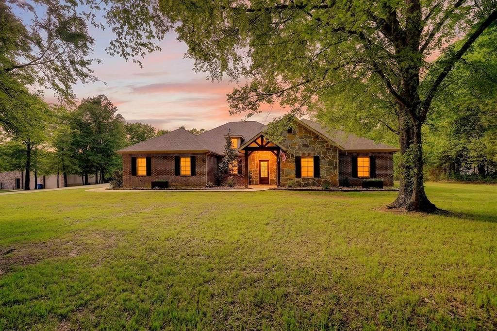 Luxury Country Living! Welcome to 2211 Canyon Lake Road. Single-story home on 5+ wooded acres in the desirable Shadow Lakes community of Wills Point, TX! This 3-bedroom, 2.5-bath home with a dedicated office offers an open-concept layout designed for both comfort and entertaining. Interior features include custom-built cabinetry, granite countertops, ceramic tile throughout, all LED can lighting, and a new dishwasher. Energy-efficient upgrades include radiant barrier attic decking and SunTex solar screens. Step outside to your private retreat featuring a stunning saltwater heated pool, (installed Summer 2024) complete with spa, waterfall, tanning ledge, bubblers, and LED lighting, all app-controlled. The outdoor living space also includes a fully equipped kitchen with grill, refrigerator, and storage, plus a second patio with a large second stone fireplace-perfect for gatherings year round. The property includes a 30x60 shop with two 12x10 roll up doors and a bathroom, an oversized garage, and a wrought iron fenced backyard with double gate access. Enjoy a scenic setting with mature trees, beautiful landscaping, a small pond, and plenty of space to roam. Additional features include 4K security cameras and custom Christmas lighting, that stays with the home. Located in a community offering multiple lakes, fishing, hiking trails, and a pool, with convenient access to Hwy 20 and nearby amenities. Turn-key and move-in ready! This property truly has it all!