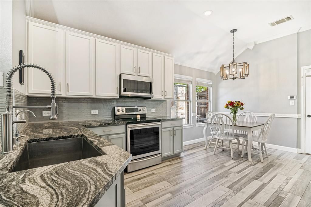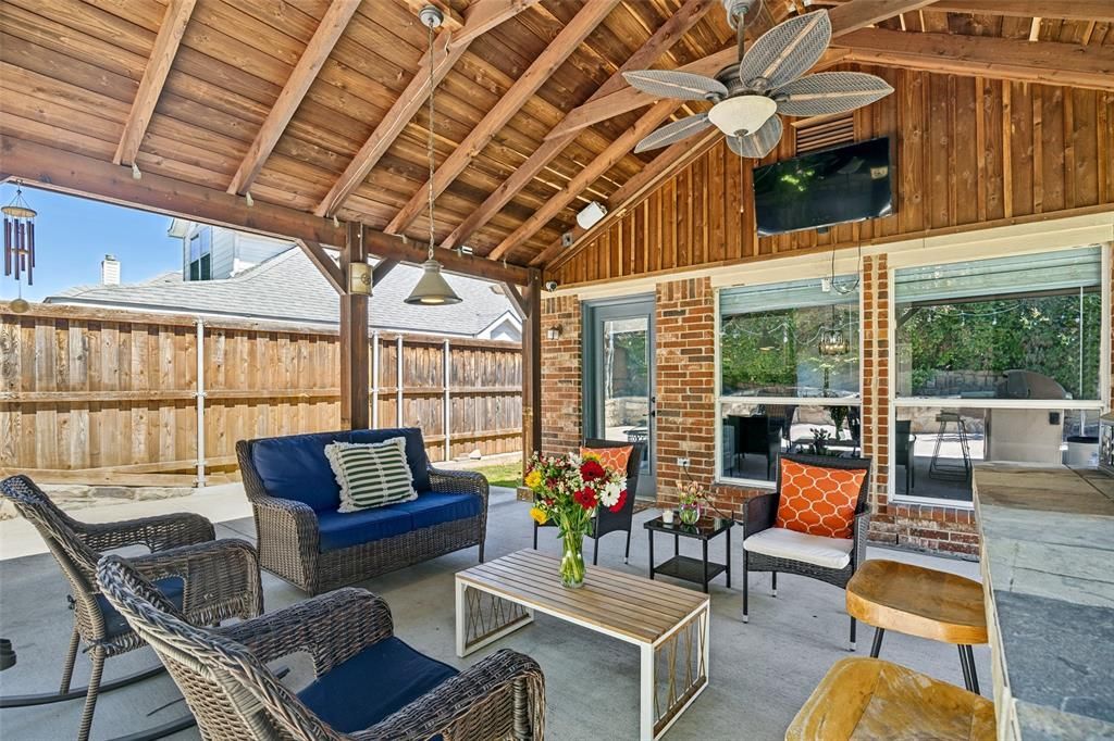$2,500 Seller credit towards Buyer's closing costs or interest rate buydown! This versatile home offers a flexible floor plan with 3 bedrooms plus a study—ideal as a home office or easily used as a 4th bedroom. Enjoy 10-ft ceilings in the main living areas and an expansive open-concept living and dining space perfect for entertaining. The kitchen features granite countertops, a stainless steel appliance package, dedicated coffee bar area, and ample cabinet space. Laminate wood flooring runs throughout with ceramic tile in the bathrooms. The spacious primary suite includes a jetted tub, separate stand-up shower, and dual closets & back-lit mirrors. A backyard retreat offers a beautiful covered patio with built-in grill—perfect for relaxed sunset evenings and outdoor gatherings! Easy access to LBJ & I-30!