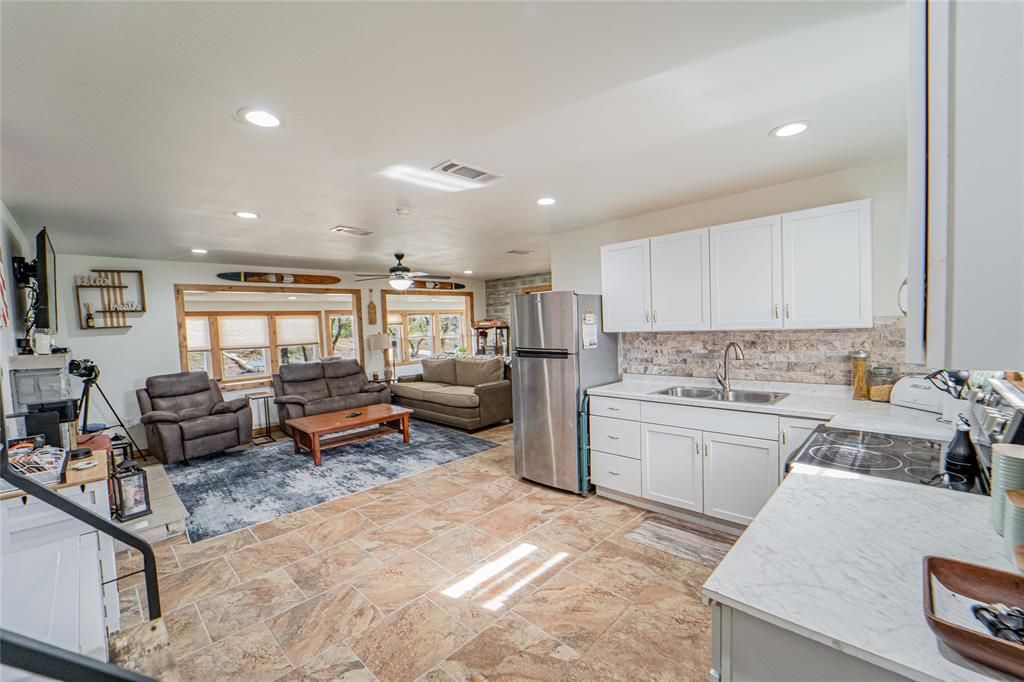 HUBBARD CREEK LAKE LISTING, 3bed, 2bath Move in Ready, Fully Furnished opportunity just waiting on you. Completely remodeled approx 1410 sqft of comfortable living space, whether you're looking for a full-time residence, weekend getaway, or investment property, this one checks all the boxes. Never miss out on the action with the kitchen, living, and sunroom open floorplan. The remodeled kitchen and bathrooms blend modern style with everyday functionality. Retreat to the master ensuite with newly constructed bathroom including walk in shower and the added convivence of a stackable washer and dryer. Bedrooms and second bath located on the opposite side of the house allowing for additional privacy. Sunroom offers peaceful views for year-round enjoyment. After a long day enjoy evenings in the backyard sitting area or cozying up by the firepit. Additional features include private dock, carport, metal roof, work room, and aerobic septic system. Contact us today to schedule a showing. Buyer and or buyer's agent to verify all information.