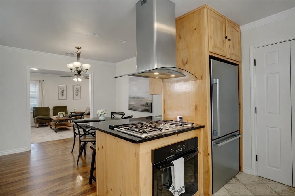 Charming, fully reimagined TCU cottage ideally located within walking and biking distance to campus. This beautifully restored home blends original character with thoughtful modern updates throughout.Inside, you’ll find original hardwood floors and a bright, inviting layout. The kitchen features custom knotty alder cabinetry with glass accents, granite countertops, stainless steel appliances, and a gas cooktop—perfect for both everyday living and entertaining. Bathrooms and utility spaces are finished with elegant travertine tile, while the primary suite offers custom tile work and a charming vintage vanity.The exterior has been professionally designed to create exceptional curb appeal, and the home sits on an oversized lot with a private, fenced backyard. Surrounded by stunning new construction, this property offers a rare opportunity to own in one of TCU’s most sought-after neighborhoods.
