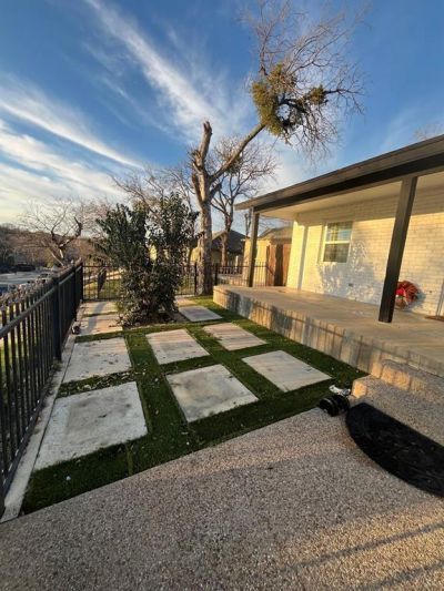 Concrete Steps lead you right up to your Modern Remodel near the Fort Worth Stockyards. A nicely concreted Front Lawn is very inviting with the Turf design. There are two bigger bedrooms, plus a third, currently being used as a Huge Walk-In Closet, but would be a great Nursery, Kids Room, Office, you name it! There is Recessed Ceilings in the Living Room and the Primary Bedroom. Ceramic Tile throughout lots of the home with Hardwood in the living room. Nice Arch ways and a beautifully tiled bathroom. The Kitchen is spacious with a Huge Island, Updated Finishes, custom wood cabinetry, and sparkly clean white countertops. There is a full size Laundry room as well! Out back we have our almost complete back patio that is set to be a private and serene paradise. Lot's of covered patio space to relax or entertain. Full Size Storage, Lighting out back pre wired for Ceiling fans, and finished out with turf (to be completed). All that's missing is your Hot Tub or your Hammock! Great, central location, 5 minutes from the Rockwood Park Golf Course, and easy freeway access.