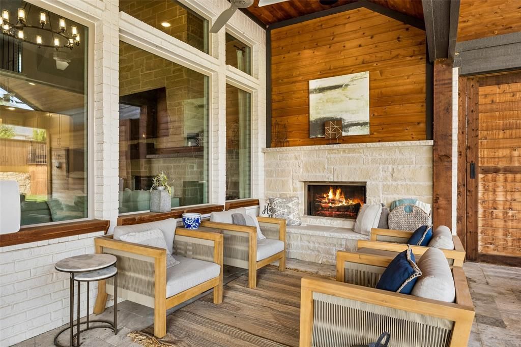 Exceptional Drees Custom Homes residence in the highly sought-after Mustang Lakes master-planned community, showcasing quality craftsmanship, thoughtful design, and EXCEPTIONAL BACK PATIO. This 4-bedroom, 4-bath home features an open-concept layout with soaring vaulted ceilings and hand-scraped hardwood flooring throughout main living areas. The inviting living room is anchored by a striking floor-to-ceiling stone fireplace with custom cedar mantle, creating a warm focal point that flows seamlessly into the kitchen and dining areas, ideal for everyday living and entertaining. The kitchen overlooks the main living space and offers abundant storage, quality finishes, and functional design. The main level includes a private primary suite designed for comfort and relaxation, along with a secondary bedroom and full bath providing flexible living options. A dedicated office features custom built-ins and upgraded finishes for a refined workspace. Thoughtful upgrades throughout include designer lighting, enhanced millwork, smart features, and expanded storage solutions. Upstairs offers a versatile layout with a media room, game room, and additional living space suited for recreation, hobbies, or gatherings. Secondary bedrooms are well-appointed with custom closets and stylish details. The outdoor living area is a true retreat, highlighted by an approximately 980 sq ft cedar-covered patio with wood-beamed ceiling, ceiling fans, and integrated lighting. A custom stone outdoor kitchen includes premium grilling and cooking stations, granite countertops, and generous storage. A stone fireplace extends the living space outdoors, creating an inviting setting for relaxing or entertaining year-round. Additional highlights include an upgraded garage with epoxy flooring and workspace, enhanced exterior lighting, gated access, and professional landscaping. This home blends comfort and elevated design in a premier community setting. See attachment for upgrade details!
