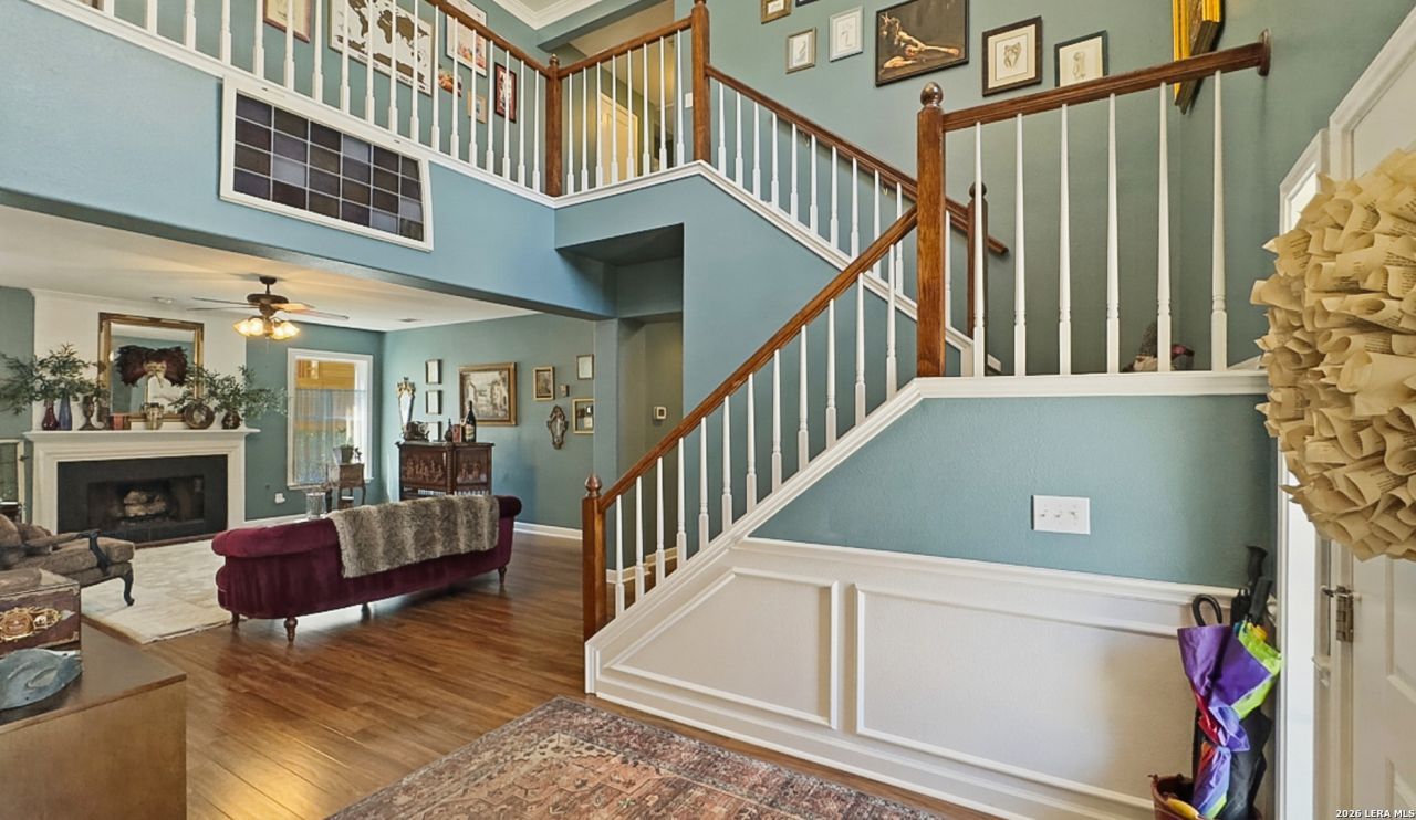 OPEN HOUSE SATURDAY, MARCH 28, 2026 FROM 11:00 AM TO 2:00 PM. Nestled within the desirable Fall Creek subdivision, this beautifully maintained and spacious home offers the perfect blend of comfort, functionality, and convenience. Enjoy the tranquility of a quiet, family-friendly neighborhood while remaining centrally located with easy access to Highway 281, Loop 1604, and IH-35, and just 20 minutes from JBSA. From the moment you enter, you are welcomed by a grand, light-filled entryway that sets the tone for the homes expansive layout. Boasting 5 bedrooms and 3.5 baths, this thoughtfully designed home features an open-concept floor plan ideal for both everyday living and entertaining. The main level showcases a private primary suite, a generous living area, and a well-appointed kitchen complete with a breakfast nook and bar seating that seamlessly overlooks the living space. A separate dining area and a convenient half bath complete the first floor. Step outside to enjoy peaceful backyard views and unwind on the covered deck and built-in playscape, which is perfect for relaxing evenings or hosting guests. Upstairs, you will find 4 additional bedrooms, 2 full baths, and a spacious media or sitting room, offering flexibility for family living, work, or play. Thoughtful recent upgrades enhance both comfort and peace of mind, including luxury vinyl plank flooring (2023), a new roof (2023), sprinkler system installation (2024), upstairs HVAC and furnace replacement (2024), an upgraded electrical panel with generator quick-connect (2024), partial fence replacement (2024), water heater installation (2025), and a water softener with carbon filtration system (2026). Meticulously cared for and move-in ready, this exceptional home truly has it all.