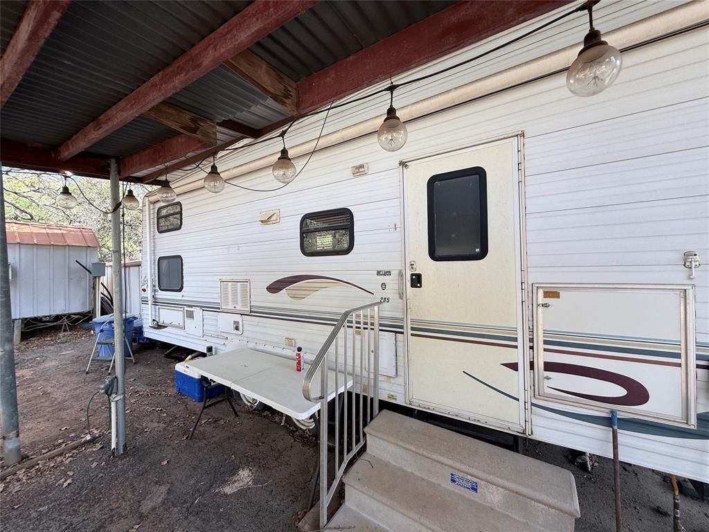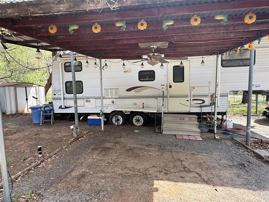 Lake Brownwood getaway at an unbelievable price! RV included! This 4 lot Lake Bronwood retreat is perfect for weekends away from the hustle and bustle and it won't break the bank! The Jayco Eagle 5th wheel is included in the purchase and will comfortably sleep up to 8 people with a queen bed in the front, pull out sofa, 2 bunk beds, and a dining table that makes into a bed for the little ones. It's equiped with everything you need to rough it for the weekend including heat and AC, refrigerator, a propane range, microwave, full plumbing, TV's and more! Outside are 3 storage buildings. One has a shower and electric in it, but the current owner has never used it. The second building features full washer and dryer hookups and lots of room for storage or even an extra refrigerator or deep freeze. The last building is storage for lake toys and essentials. The lot even has room with electric and water hookups for a 2nd RV for additional guests. The RV is covered and has a covered patio area to keep you cool in the summer and provide plenty of room for cooking out and conversation. There is an additional covered area near the 2nd RV hookups, a picnic table, swing, grill and more...it's ready for new owners and new memories to be made! There is also plenty of parking including boat parking inside the fenced area. The neighborhood also has a community pool, boat ramp, boat dock, and even a convenient store and restaurant just blocks away. Your lake retreat awaits at 3120 Flying Bridge Dr!