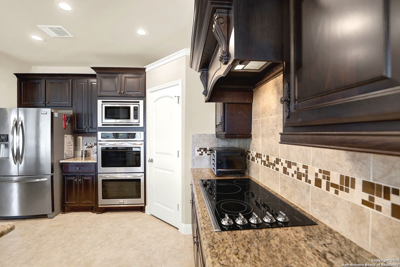 Exquisite 1 Story 3-Sided Brick Home in the highly sought-after Turning Stone community in Cibolo! Ideally situated just minutes from Randolph AFB, Cibolos charming Main Street, top-rated schools, and vibrant shopping centers, this home offers both convenience and luxury * 4 Bedrooms, 2 Full Bathrooms, 2288 Sq Ft * Step inside to discover a bright and open layout with tall ceilings throughout along with a Custom Stone Arch located inside * The chefs kitchen is a true showstopper, featuring an Oversized G