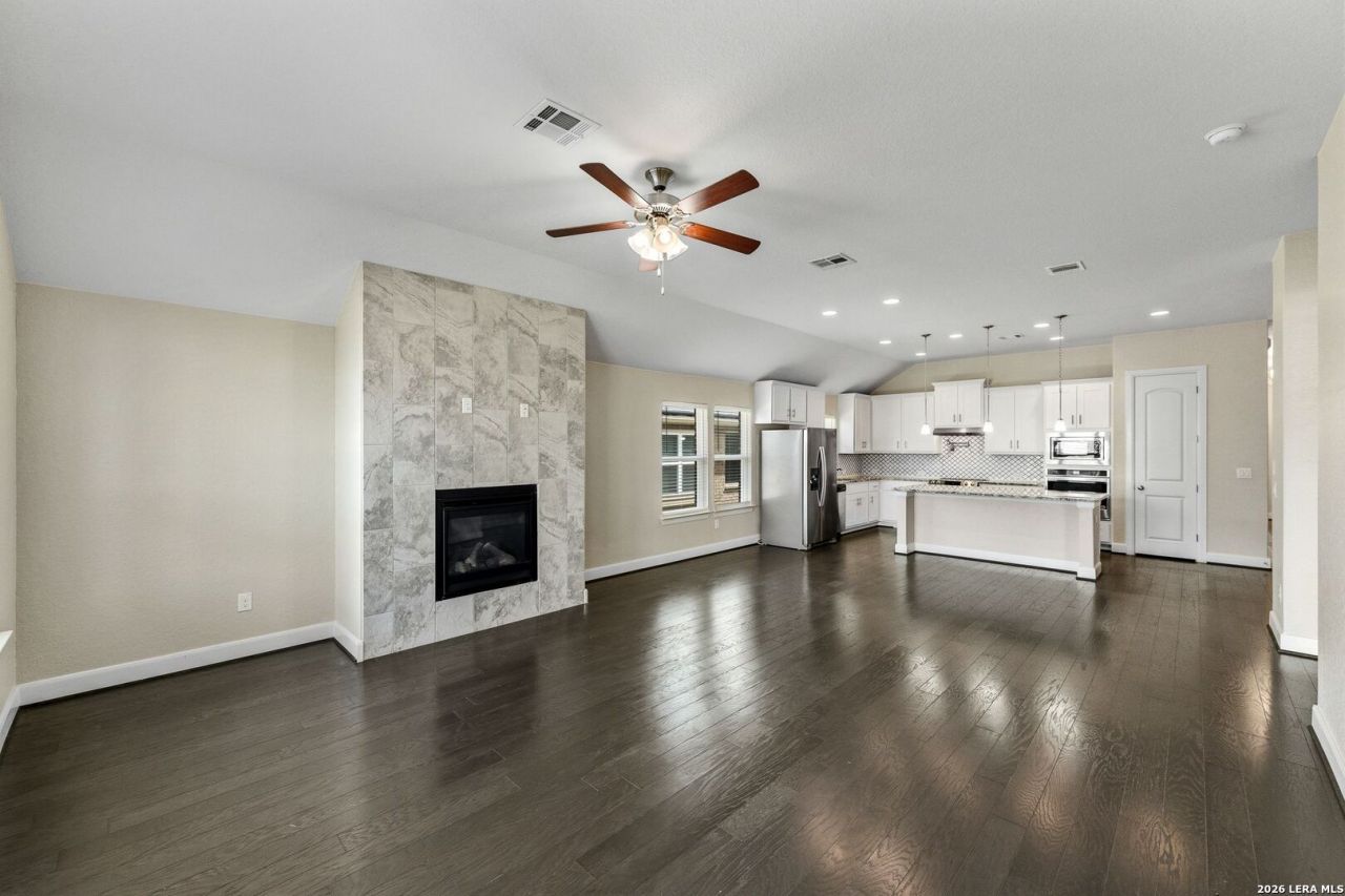 BEST OPPORTUNITY IN HIDDEN TRAILS! SELLER IS OFFERING $15,000 toward BUYERS CLOSING COSTS TO LOWER INTEREST RATE AND MONTHLY PAYMENT! MOVE-IN READY HOME WITH INSTANT EQUITY! There is also a SPECIAL LENDER INCENTIVE! Stunning PREMIUM-BUILDER Scott Felder MOVE-IN-READY home featuring fully paid-off SOLAR PANELS, exceptional energy efficiency, and brand new carpet installed! LOW energy costs, and outstanding value! Located in a highly desirable RESORT-STYLE community with incredible amenities and zoned to highly rated Comal ISD. Experience exceptional craftsmanship and timeless design in this beautifully upgraded open-concept 4-bedroom, 3 full-bath home, built by one of the areas most respected premium builders. Featuring upgraded wood flooring in the main living areas and constructed with three sides of masonry (brick and stone), this home offers superior quality, durability, and outstanding curb appeal. The property also includes an oversized two-car garage. The fully paid-off solar panels deliver remarkable energy efficiency and impressive savings. The electric performance of this home truly stands out, with remarkably low electric expenses even during the hottest Texas summers and cooler winter months, providing the next owner with long-term savings and peace of mind. From the moment you arrive, youll notice the upgraded front yard landscaping, gutters, Ring camera system, and impressive exterior presentation. As you enter the home, you are welcomed by soaring ceilings, abundant natural light, and an open layout that creates a bright and inviting atmosphere. The spacious family room with a cozy fireplace flows seamlessly into the kitchen and dining areas, making it perfect for entertaining and everyday living. Gorgeous wood flooring, designer lighting, and thoughtful upgrades enhance the elegant feel throughout the home. The gourmet kitchen is truly the heart of the home and features built-in stainless steel appliances, quartz countertops, custom cabinetry with abundant storage, a large island ideal for gathering, gas cooking, and upscale design finishes. The refrigerator is negotiable. With its functional layout and generous cabinet space, this kitchen perfectly blends beauty and practicality. Three bedrooms are conveniently located at the front of the home, including a guest bedroom with a large walk-in closet, providing excellent privacy separation. One bedroom can easily serve as a private office or flex space with access to fiber optic internet, ensuring high-speed connectivity for work and entertainment. All bathrooms feature tile finishes, offering durability and a clean, modern look. The primary bathroom creates a spa-like retreat with a spacious garden tub, walk-in shower, double vanity sinks, a dedicated towel storage closet, and a private toilet room. The luxury primary suite is thoughtfully designed to provide both comfort and privacy. Outdoor living is exceptional, featuring an extended covered patio, a spacious bac