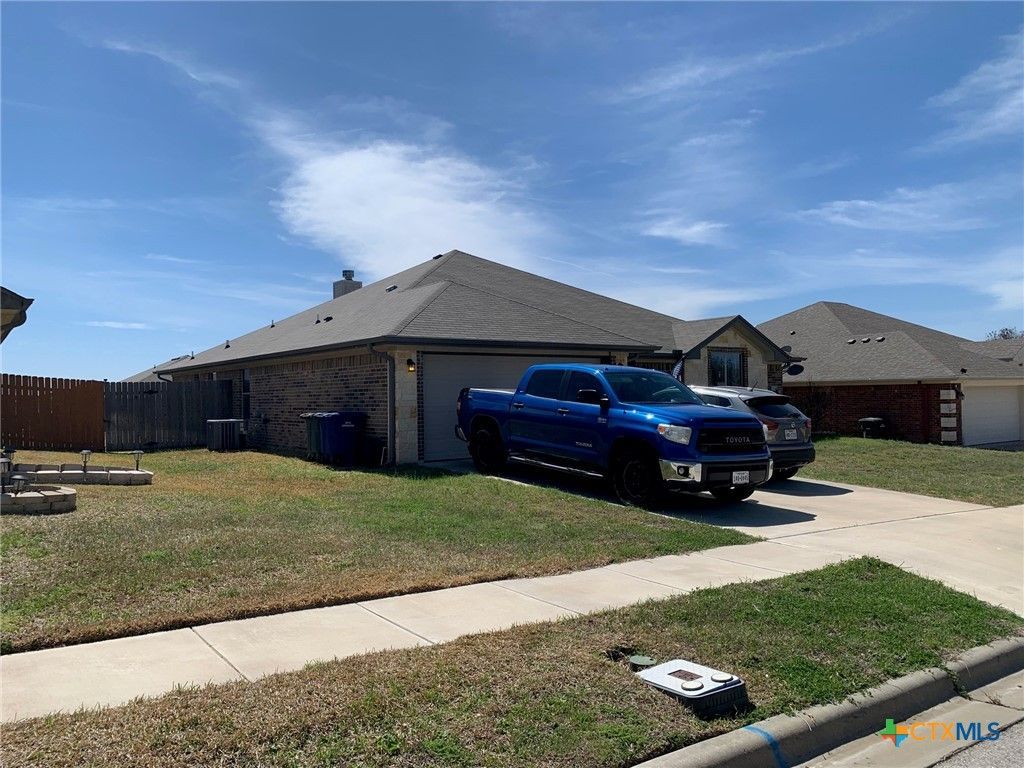 Wonderful, well maintained, 2088sq ft, four-bedroom home now available in Copperas Cove at Skyline Flats! Do you like the country atmosphere yet close enough to town? If so, this is the home for you! NO HOA on a mostly flat property! This single-story home has a 2-car garage with extra storage space for lawn equipment and built in Rubbermaid storage racks on the side and leads into your mud room with washer and dryer. This is a split carpeted bedroom floor plan with the main on your garage side to hear any of the kids trying to leave with a car and the other 3 bedrooms located on the opposite side. This home is equipped with a complete security system that can convey, additional components can be added to the system if desired, so you will still know if your kids are trying to sneak out. The remaining areas are tiled with the living room open to both the kitchen and formal dining room. Additional inside features include a breakfast area in the large kitchen space, granite countertops located in the kitchen and matching in both the full guest bathroom with double sinks and the main bathroom with split sinks. The main bathroom also sports a sizeable walk in closet, extra storage closet, large tub and a separate large extremely unique showering space. The backyard has a nice, covered patio that is extended by a paver-based patio with flower beds. Spend plenty of time entertaining friends, family or set up a bouncy house for a birthday party. Enhance the entertaining or personal time in the backyard with the Bluetooth outside speaker system or grill up some food after utilizing the prep station. There are so many possibilities with this home. Come see this home today and you will want to end your search to make it YOUR home now!