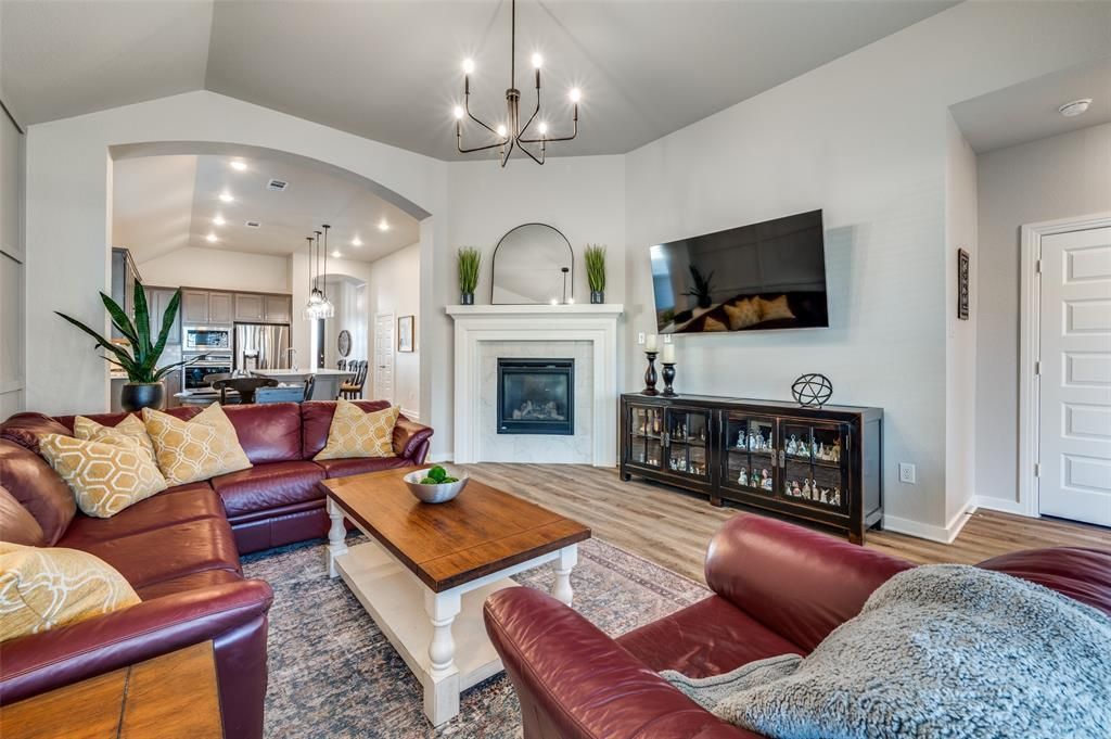 Highland Home feels like NEW! Natural light flows through this 1 story floor plan, connecting the living spaces to a spacious covered patio,perfect for morning coffee or evening gatherings. Luxury vinyl plank flooring enhances all main living areas and hallways. The gourmet kitchen showcases stainless steel appliances, gas cooktop, and built-in microwave and oven, paired with richly stained cabinetry featuring 42 inch uppers with adjustable shelving and pristine white quartz countertops. The breakfast nook flows from kitchen to family room with large walk in pantry laundry area. The spa-inspired primary bath offers a separate shower with upgraded tile surrounds in both the tub and shower. Popular single story home with great floor plan. The 4 the bedroom can be ideal study away from the other bedrooms. Step outside to a spacious covered patio, perfect for refined outdoor living with stone ledge flower beds. Sandbrock Ranch offers incredible amenities with Club house, community pool, playground and walking and bike trails.