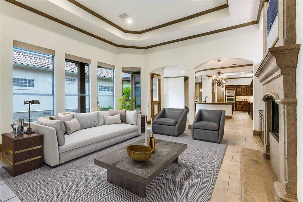 Discover this turn-key luxurious executive villa, nestled within the exclusive, private gated enclave of The Courtyards—a serene 23-home community bordering Addison. Offering effortless access to world-class dining, shopping & major thoroughfares, this residence delivers unparalleled convenience & privacy. Spanning primarily one level with a graceful, open-concept floor plan, the home features an upstairs bonus media room & full bath. A standout highlight is the separate casita overlooking the stunning oasis pool—complete with its own living room, spacious bedroom & full bath—ideal as a private guest suite, executive office, or family living quarters. Inside, expansive living & dining areas flow seamlessly into a gourmet kitchen, anchored by two fireplaces, rich built-ins, elegant crown molding, arched doorways, a butler’s pantry, and a dedicated bar with wine storage & fridge. Soaring windows frame a picturesque U-shaped courtyard, showcasing the sparkling pool, cascading water features, flickering fire bowls & a large covered patio. A dramatic wrought-iron private entry gate welcomes you into the foyer between the main residence and casita. The chef-inspired kitchen boasts a gas cooktop, ss double ovens, a generous island with breakfast bar, farmhouse sink, abundant cabinetry & refined lighting. Just off the entry, elegant wrought-iron double doors open to a chandelier-lit study or wine room, adding timeless sophistication. The primary suite is thoughtfully split from the secondary bedrooms & opens directly to a private porch overlooking the pool. Its spa-like bath features a jetted tub, frameless walk-in shower, dual vanities, travertine flooring & an expansive walk-in closet with custom built-ins. In total, the home offers four full baths, laundry room with sink, a private side yard, sprinkler & security systems. With its dormer windows, Juliet balcony above the gated entry & two-car garage, this exceptional home embodies refined Texas living at its finest.