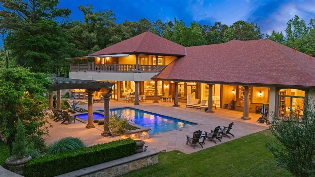 Welcome to Casa Cantera, an extraordinary luxury estate on 3 pristine acres in North Longview’s prestigious Champions Ridge Estates. This Mediterranean masterpiece offers 5 bedrooms, 4.5 baths, a private office with built-ins, and refined living spaces throughout. The main-level primary suite features dual baths, separate his-and-hers closets, and serene views of the resort-style backyard.A private gated entrance, rod iron fencing, and lush landscaping lead to grand 10-foot iron double doors with a 5-foot transom. Inside, polished marble floors, 2x6 construction, and a reinforced foundation with fiberglass mesh and 50+ piers showcase quality craftsmanship. Electric shades add convenience throughout.Designed for entertaining, the home features a great room with fireplace, wet bar, and wine cellar with separate HVAC and closed-cell foam. The chef’s kitchen includes top-of-the-line Thermador appliances, plus whole-home water filtration, central vacuum, and open-cell spray foam insulation.Outdoor living includes a pool, massive pergola with fireplace, covered and open patios, full outdoor kitchen, and two 60-inch gas heaters. Copper gutters, mature trees, and stunning landscaping create a private retreat.Additional highlights: 22KW natural gas generator, 3 tankless water heaters, heated downstairs bath floors, 4-car garage with new epoxy floor (2026), 400 SF HVAC storage building (not included in SF), imported hand-carved Cantera and limestone accents, cedar soffits, camera system, and HVAC dog room.New Class III roof (2026). Casa Cantera defines luxury, privacy, and exceptional living.