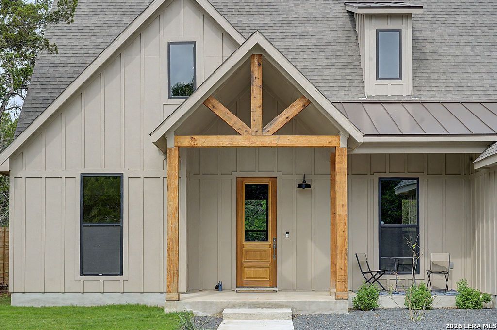 Welcome to 39 Summertime Cir, a stunning new construction modern farmhouse built by DSHRL Holdings LLC in the breathtaking Wimberley Hill Country. Masterfully built with impeccable attention to detail, this stunning residence blends sleek lines with warm, rustic charm. Offering an ideal open-concept layout, this home provides the ultimate sanctuary for relaxation and entertaining. From the moment you arrive, the homes curb appeal captivates with handsome board-and-batten siding, a timber-framed covered porch, and dark roof accents. Step inside to a bright, airy living space flooded with natural light. Soaring ceilings and stunning wood-look tile flooring flow continuously throughout-offering modern luxury with the convenience of absolutely no carpet! The heart of the home is the main living area, anchored by a magnificent floor-to-ceiling white stone fireplace. Complete with a custom shiplap TV nook, floating wood shelving, and built-in cabinetry, this space is truly beautiful. Seamlessly connected is the chef-inspired kitchen. It boasts a massive central island, pristine quartz countertops, sleek cabinetry, a custom wood-trimmed vent hood, and an incredible walk-in pantry with built-in prep space. The spacious primary suite is a private retreat with large windows. Step into the spa-like en-suite bath to discover an extended double vanity, a luxurious soaking tub, a walk-in shower, and a meticulously organized walk-in closet. The secondary bedrooms are generous and feature a stylish full bathroom featuring striking tile. Outside, your covered patio awaits. Whether enjoying morning coffee or hosting a barbecue, this outdoor space offers ultimate tranquility. The propertys mature trees provide exceptional privacy. Benefit from a desirable low tax rate while living a short drive from local attractions! Spend weekends exploring Blue Hole Regional Park, Jacobs Well, local wineries, and the boutiques of downtown Wimberley Square.