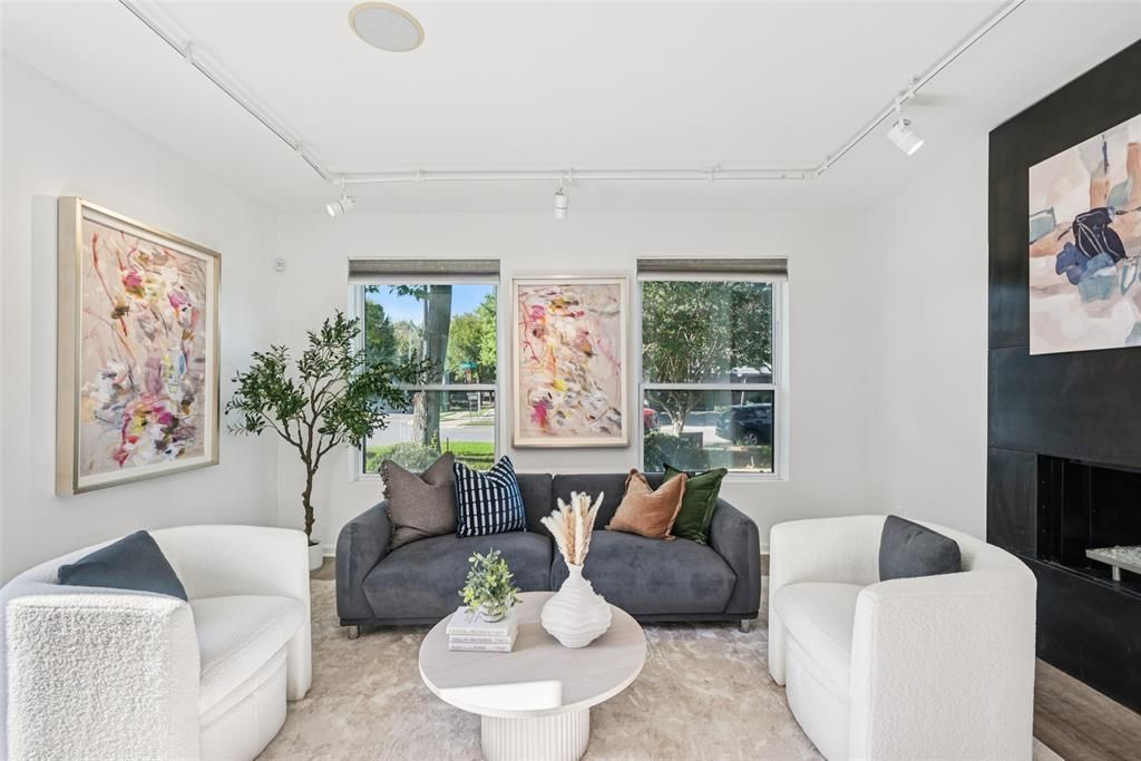 Corner unit. Two outdoor spaces. Endless light. This SOHIP stunner doesn't just check boxes—it shows off. With oversized windows and sunshine pouring into every corner, it lives big, bright, and effortlessly.Inside, the newly redesigned kitchen steals the spotlight with expanded cabinetry, sleek quartz counters, a tile backsplash, and a butcher-block peninsula perfect for impromptu dinners or Sunday brunch. It flows into the living area, where a bold contemporary fireplace and French doors open to your own flagstone patio with wood privacy fencing—morning coffee, happy hour, or just a quiet escape.Upstairs, two bedrooms each have their own full en-suite bathroom—no sharing. The corner primary suite has vaulted ceilings and treetop views. In-unit laundry on this level.Then the spiral staircase takes you to the real surprise: a third-floor flex room that opens onto a rooftop deck with skyline views. Home office. Media room. Guest suite. Whatever you need that doesn't fit downstairs—with its own outdoor space.Mature trees frame the gated entry. Natural light from multiple exposures all day long. Moments from the Katy Trail, Turtle Creek, and Oak Lawn's best dining and nightlife. Two outdoor spaces, three levels, and a layout most units around here simply don't have.