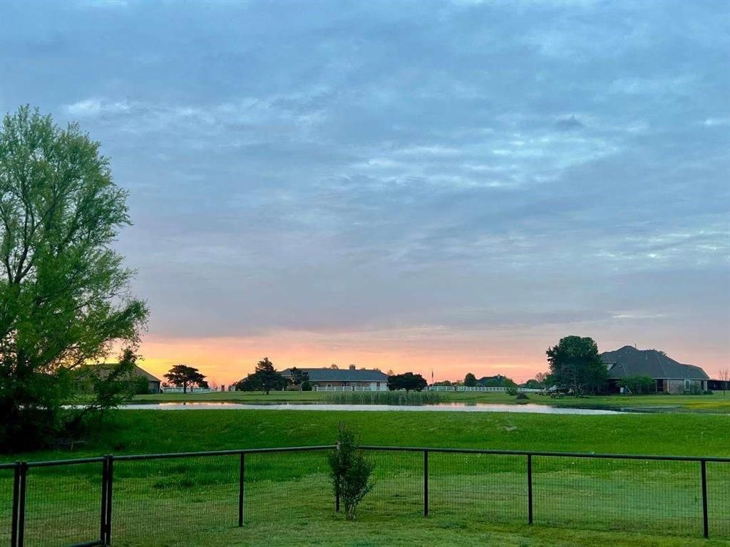 Welcome to this stunning 4-bedroom, 3.5-bath home nestled on a peaceful cul-de-sac in Hidden Lakes Ranch! This single-story gem sits on a 1.09-acre lot with a tranquil water view, offering 3,099 sq. ft. of living space and 4,780 sq. ft. total under roof. Highlights include an oversized 3-car garage, a whole-house AquaSana water purification system, energy-efficient LED lighting, and gorgeous hand-scraped hardwood floors. The kitchen features a GE Monogram 6-burner cooktop with pot filler, professional vent hood, oversized granite island, knotty alder cabinetry with soft close doors, over-under cabinet lighting, and huge walk-in pantry. The master suite boasts a spacious 12x10 walk-in closet and a luxurious bathroom with heated travertine floors, large soaking tub for two, and large shower with rain head. Additional features include a home office, living room with a gas log stone hearth fireplace, indoor tornado shelter-safe room, 40' RV parking pad, 20x30 walk-up spray foam insulated attic for extra storage, and covered patio with an outdoor fireplace and propane hookup for a future outdoor kitchen. Too many unique features to list! Please ask for the complete detailed list and come see this amazing property located in Gunter ISD!