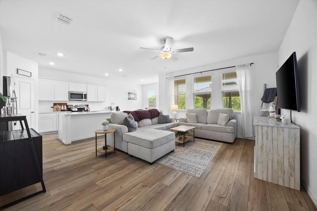 **Charming Retreat on Quiet Cul-de-sac**Discover your dream home nestled in the serene community of Fate, TX. This beautifully crafted 4-bedroom, 2-bathroom residence boasts a 2-car garage and is perfectly positioned on a cul-de-sac lot with no homes directly behind or to one side, offering ultimate privacy and tranquility.Step inside this light-filled home, where an open-concept design seamlessly blends living spaces while providing a cozy and inviting atmosphere. The spacious living room flows effortlessly into the dining and kitchen areas, creating an ideal setting for entertaining or simply enjoying everyday life. Large windows throughout ensure abundant natural light, emphasizing the home's bright and airy ambiance.The heart of the home is the stunning kitchen, featuring crisp white cabinetry and ample counter space that will delight any culinary enthusiast. Designed to accommodate both casual meals and formal gatherings, the kitchen's functional layout offers plenty of room for cooking and entertaining.The primary suite is a peaceful retreat, offering a generously sized bedroom and an ensuite bathroom complete with double vanity and ample storage. The additional three bedrooms are versatile and spacious, perfect for guests or a home office, and all have walk-in closets.Outside, enjoy the serenity of your extended patio with a charming gazebo, perfect for relaxing or hosting outdoor events. The backyard faces a greenbelt, ensuring a peaceful escape from the hustle and bustle of daily life. With such an idyllic backdrop, your outdoor oasis is ideal for savoring the Texas evenings.This brick home offers a rare blend of privacy, comfort, and natural beauty. Enjoy all the amenities and charm Fate has to offer, while also relishing the seclusion and peace this unique property provides. Experience the perfect harmony of style and functionality in this elegant sanctuary.