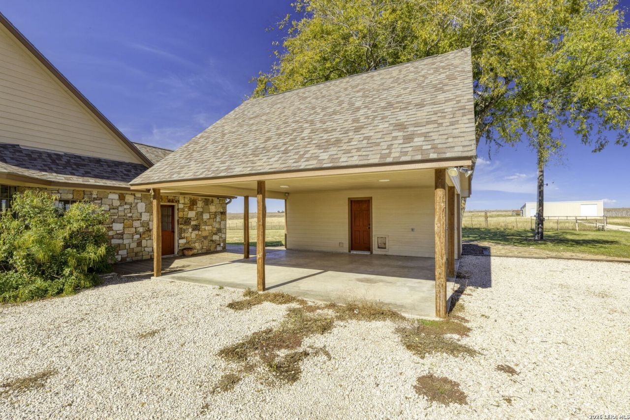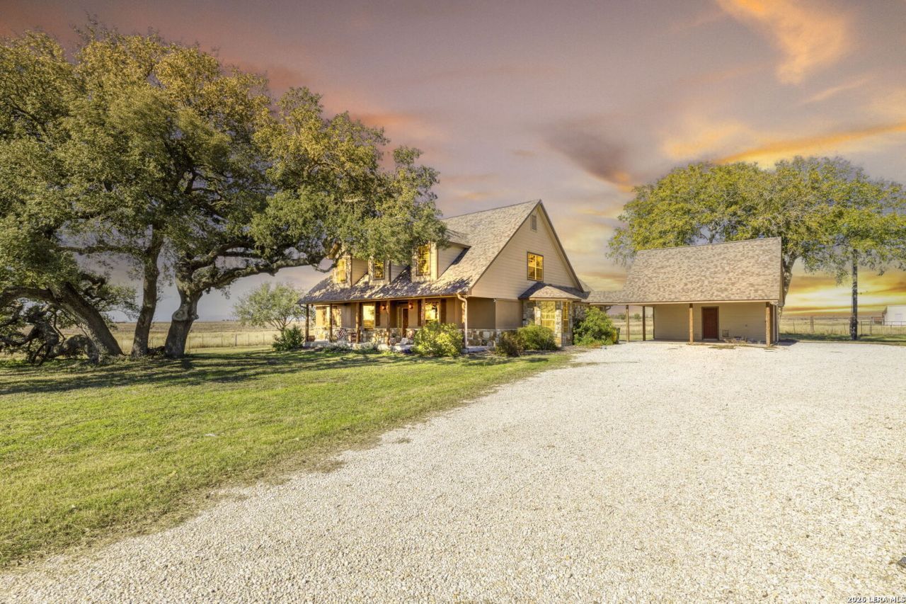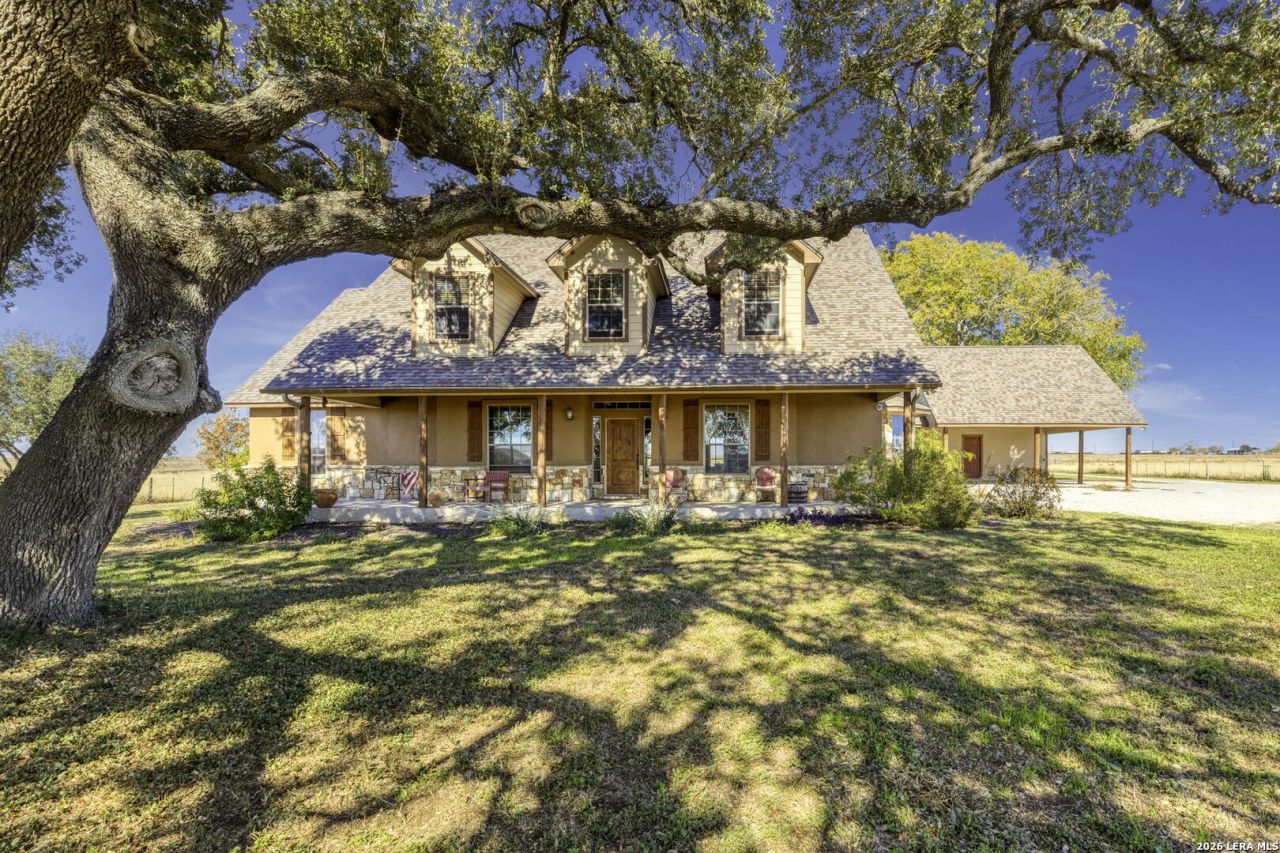 Set on 11.3 acres of gorgeous level land, this exceptional countryside retreat offers space, privacy, and versatility in a prime Central Texas location. Positioned between Austin and San Antonio and just minutes from San Marcos, Seguin, and New Braunfels, the property combines rural tranquility with effortless access to city conveniences. At the heart of the property sits a thoughtfully designed, custom two-story home built in 2007, offering approximately 3,300 square feet of well-maintained living space. Inside, youll find five bedrooms, three and a half bathrooms, and multiple living areas designed for both comfort and functionality. The main level features a spacious primary suite, two additional bedrooms filled with natural light, and a large laundry room. The kitchen is equipped with stainless steel appliances and flows seamlessly into the dining and living areas, highlighted by a gas fireplace. Upstairs, an expansive secondary living space is joined by two oversized bedrooms and a full bath-ideal for guests or extended family. Outdoor living is equally impressive, with front and back porches perfect for taking in the scenic views, along with an outdoor kitchen for entertaining. The land itself is well suited for equestrian or agricultural use, featuring two barns, three horse stalls with a breezeway, a pond, multiple sheds, and a workshop. A whole-house propane generator adds peace of mind year-round. Located within the highly regarded Navarro ISD, the property offers quick access to I-35, I-10, and Highway 130, making travel effortless. Both Austin-Bergstrom and San Antonio International Airports are approximately 40 minutes away. This is a rare chance to enjoy wide-open space, quality construction, and modern comforts-all within reach of everything Central Texas has to offer.