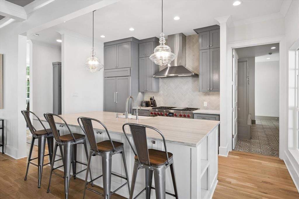 Taken to the foundation and reimagined in 2021, this stunning home offers modern design, functional luxury, and an unbeatable layout. Situated on a spacious 0.40-acre lot, this property features an open floor plan perfect for entertaining both indoors and outdoors. The main level showcases a light-filled living space with a seamless flow between the open-concept kitchen featuring SubZero and Wolf appliances and quartzite countertops, living room, dining area with a wall of windows, and an inviting family room. A private home office overlooking the front yard provides the ideal work-from-home setup. The beautiful primary suite is a true retreat, complete with a spa-like ensuite bath and a large walk-in closet. A split secondary bedroom downstairs also features its own ensuite bath and walk-in closet—perfect for guests or multigenerational living. Upstairs, you’ll find two additional bedrooms with ensuite baths, a spacious game room, and a large workout or flex room to suit your lifestyle. Step outside to your backyard oasis with low-maintenance turf, a sparkling pool, covered outdoor living area, and mature trees offering both shade and privacy. Additional highlights include a 3-car garage and a prime location close to top-rated private schools, restaurants, shopping, and major highways. This move-in-ready home truly has it all—modern updates, flexible living spaces, and exceptional indoor-outdoor living.