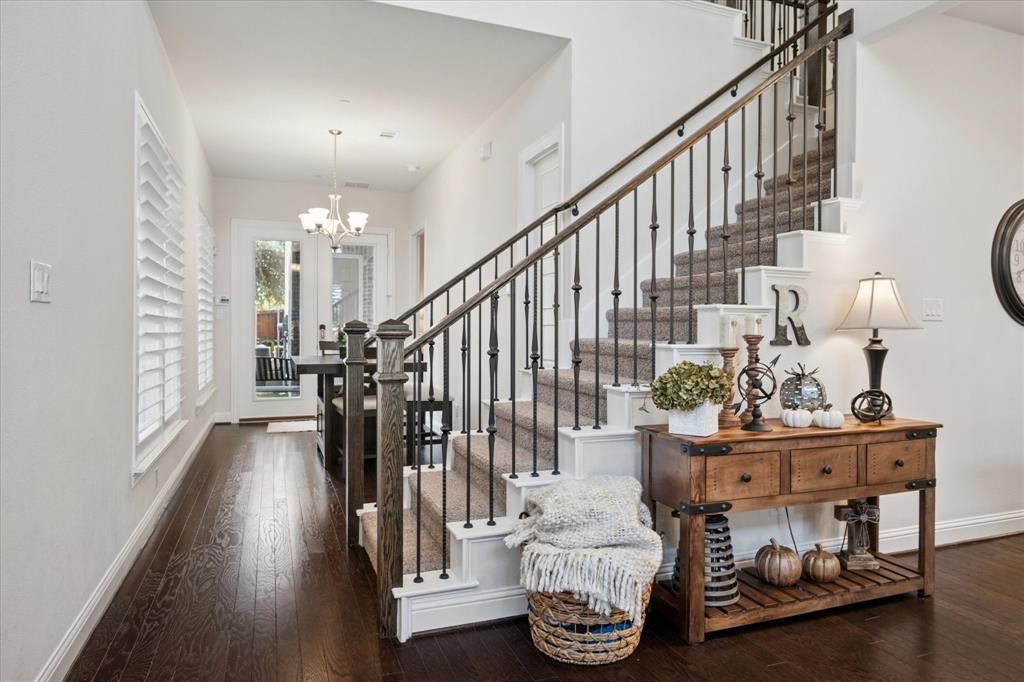 Welcome to this beautifully appointed 4-bedroom, 3.5-bath townhome that blends comfort, style, and functionality. Featuring a striking brick and stone elevation and landscaped front yard, this home offers incredible curb appeal from the start. Step inside to discover an open-concept layout with tall ceilings and tons of natural light that floods the main living area. The wrought iron staircase adds a touch of elegance, while the second-floor overlook gives the space an airy, architectural feel. Upstairs, a spacious flex space provides endless possibilities for a game room, home office, or media lounge. The heart of the home is the gourmet kitchen with granite countertops, complete with a large island, stainless steel appliances, gas cooktop, walk-in pantry, and stylish finishes — all seamlessly flowing into the living room for easy entertaining. Retreat to the expansive primary suite, featuring a large walk-in closet and a luxurious en-suite bath with a stand-alone soaking tub, separate shower, and dual vanities. As you walk around, notice the 4 inch plantation shutters! All bedrooms are carpeted for added comfort, and the home includes three full baths and one half bath, ideal for family living or hosting guests. Enjoy your private outdoor living space with a covered back porch on, low-maintenance turf grass, and fully fenced yard, perfect for pets, kids, or quiet evenings outdoors. Additional conveniences include rear parking for easy access and added privacy. Easy access to 121 and 75, and is a perfect lock and leave property. Get in on this assumable 2.5% interest rate 15 year loan! Priced under appraisal value, and with a ridiculously low interest rate this property provides excellent value!